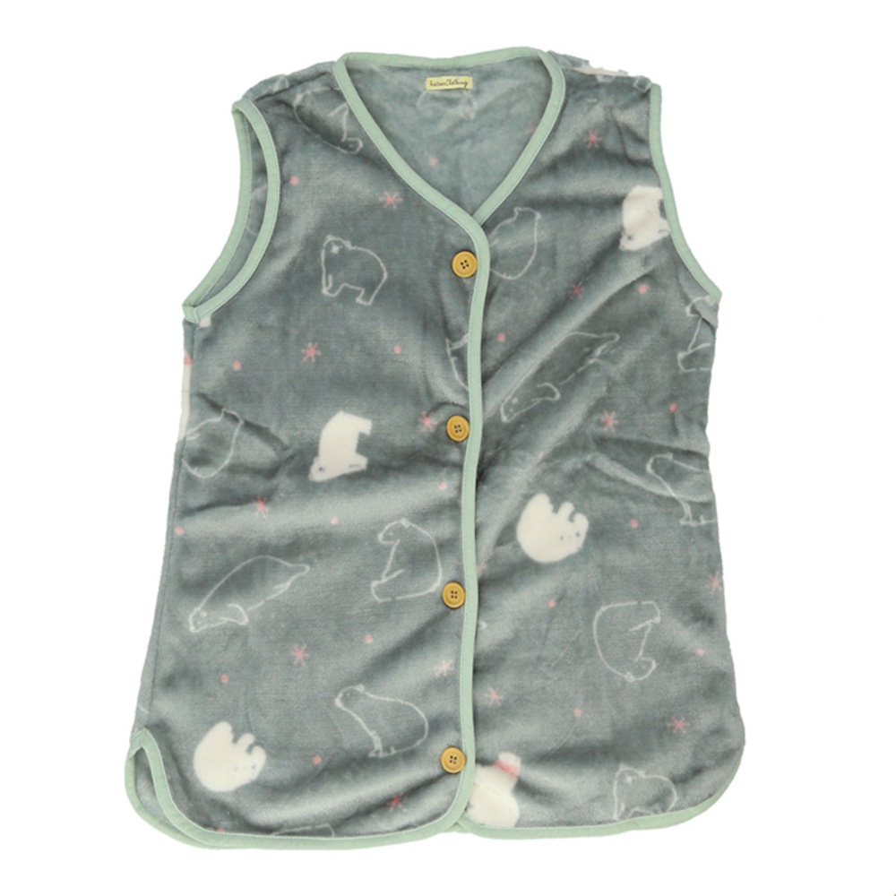 ☆ 3B.シロクマMI ☆ フランネルKIDSスリーパー スリーパー キッズ ベスト 着る毛布 パジャマ ルームウェア 前開き 半そで ボタン