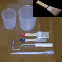 FRP積層 簡易工具,鉄ネジローラー・刷毛・PP容器・スポイド・皮スキ