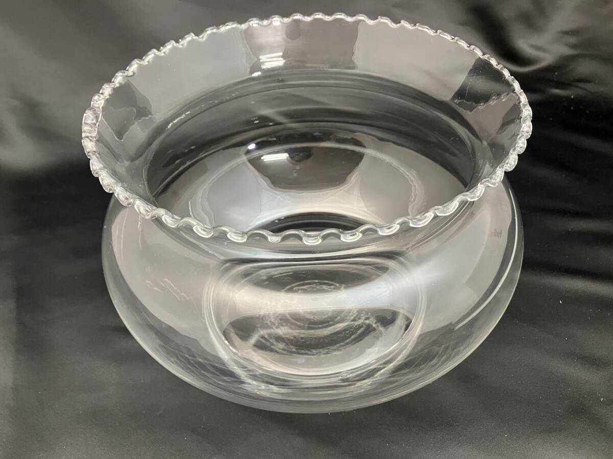 アンティーク風 手作り ガラス製フリル付き金魚鉢 大
