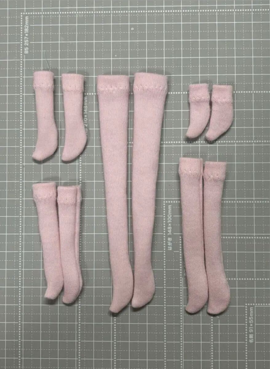 足にピッタリ沿うブカブカ感の無い型に作ってありますので、長いソックスだと特に、ドールの足が綺麗に映えると思います。