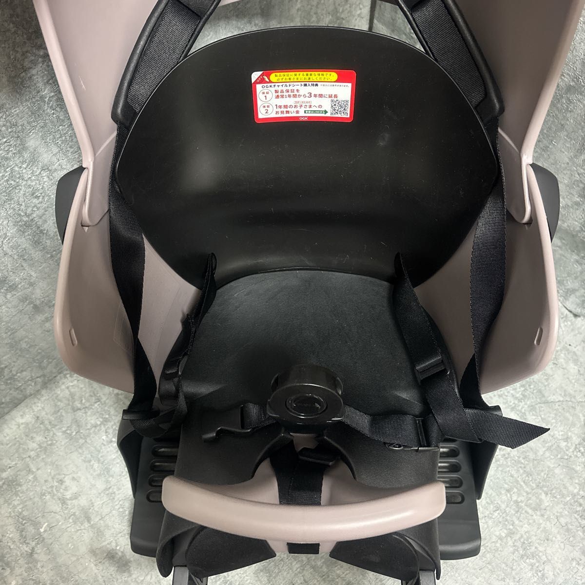 ・カラーは落ち着いたピンクグレーで、自転車・お子さまに合わせやすい色合いです。