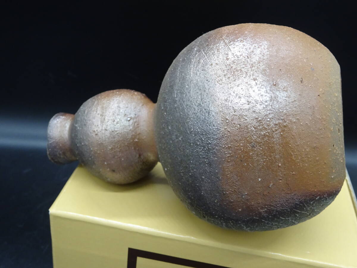 備前焼 人気実力作家 澁田寿昭(師:伝統工芸士鷹取関山、受賞歴多数)★備前窯変瓢徳利 紙箱、陶歴付  酒器 茶碗 壺 茶道具