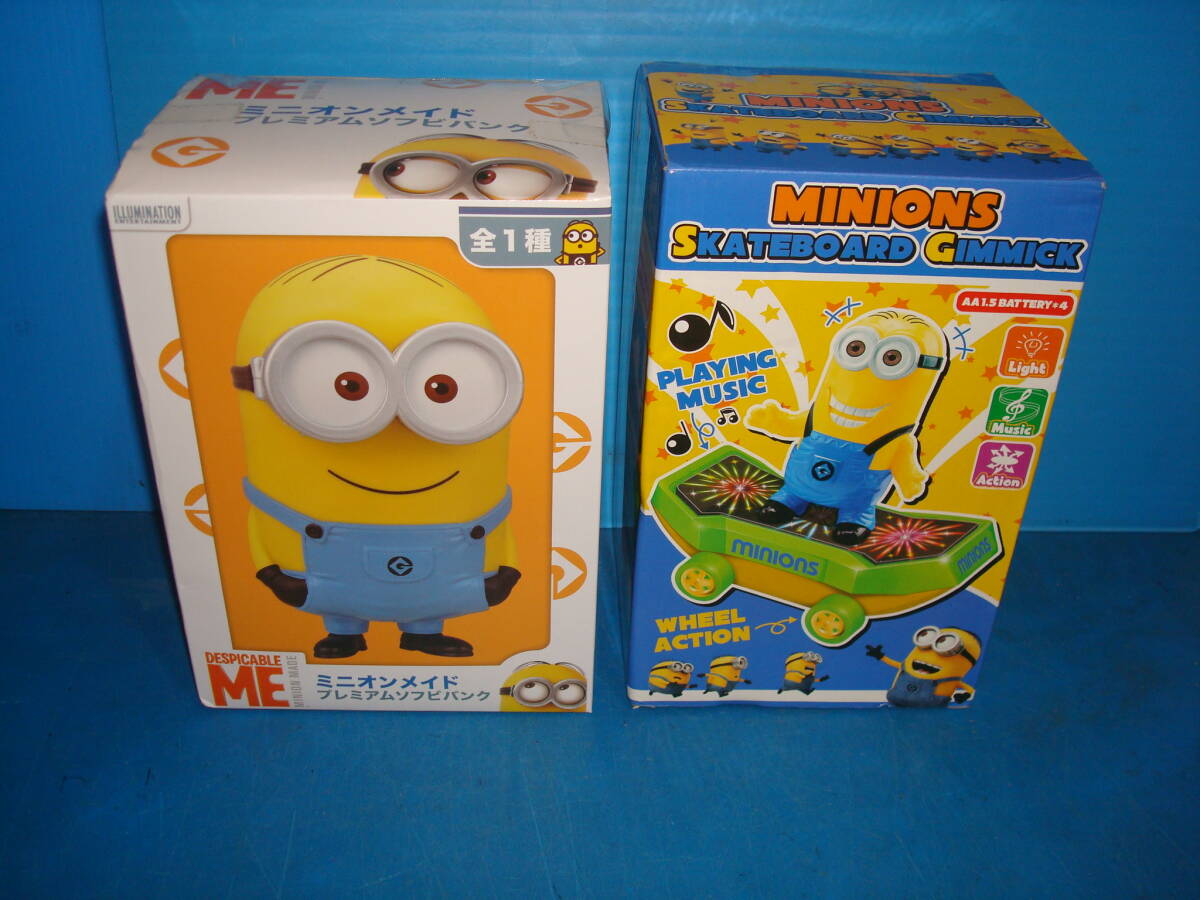 ①ミニオンバンクと②スケートボードアクション 2点になります。①未使用、②動作確認済(走るとメロディが流れる)。