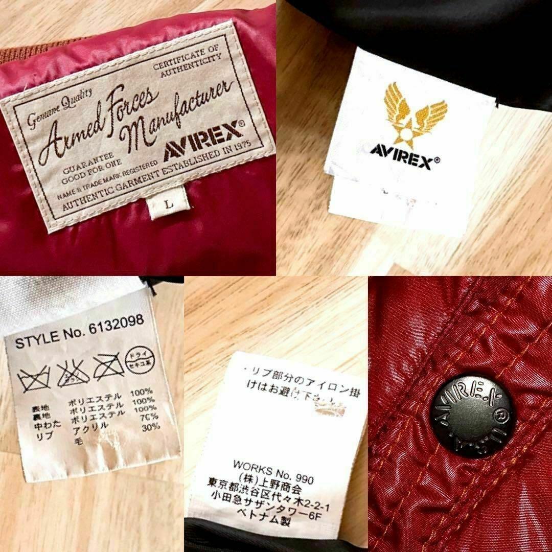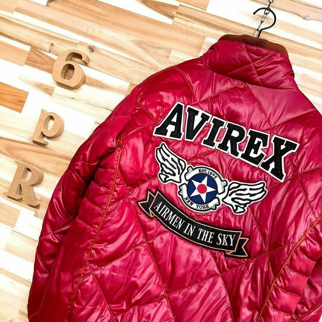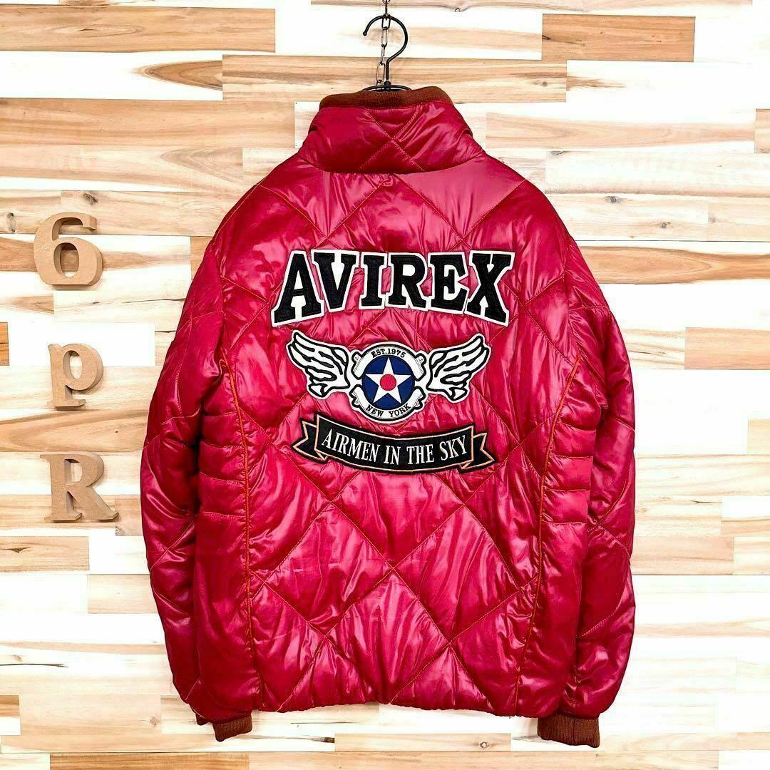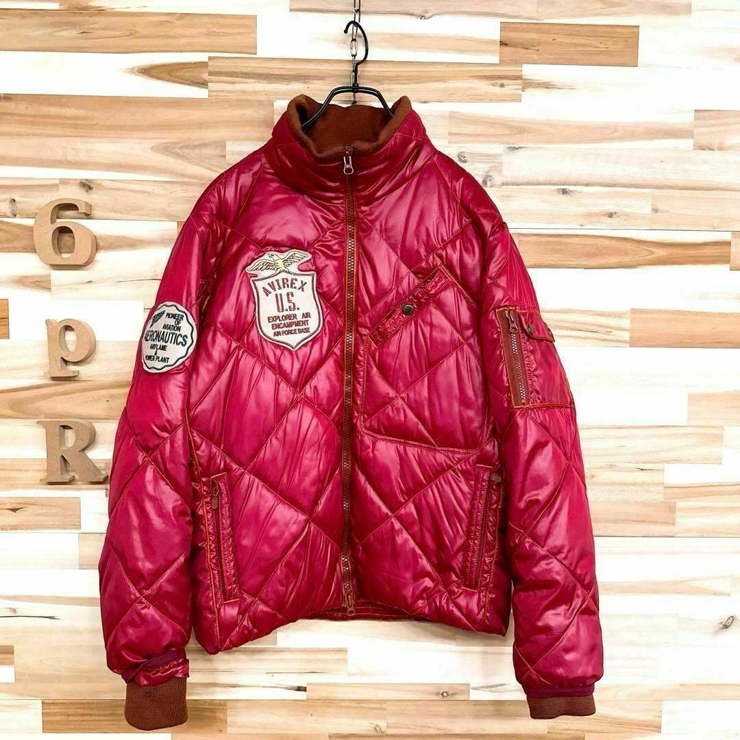 フロントと右腕には雰囲気あるオリジナルワッペン、背面にはブランドネームとエアホースマークを組み合わせた大判ワッペンをレイアウトした力強いデザイン。表地は、光沢感をまとったダイヤモンドキルトのナイロンで仕立てられ、軽量でありながらハイネック仕様など、しっかりとした防寒性、保温性を備えたAVIREXのジャケットです。バイクに乗られる方、バイカースタイルとの相性も抜群な逸品です。※LGスタイラーにて除菌リフレッシュ・スチームクリーニング済みです。