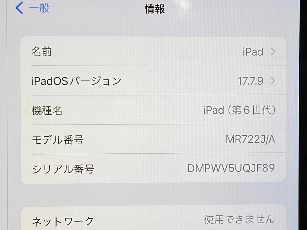 | 品名型番 | ipad6 A1954 MR722J/A | 光学ドライブ | - |