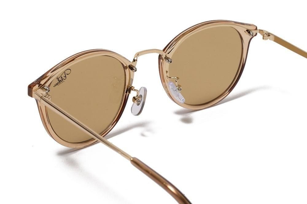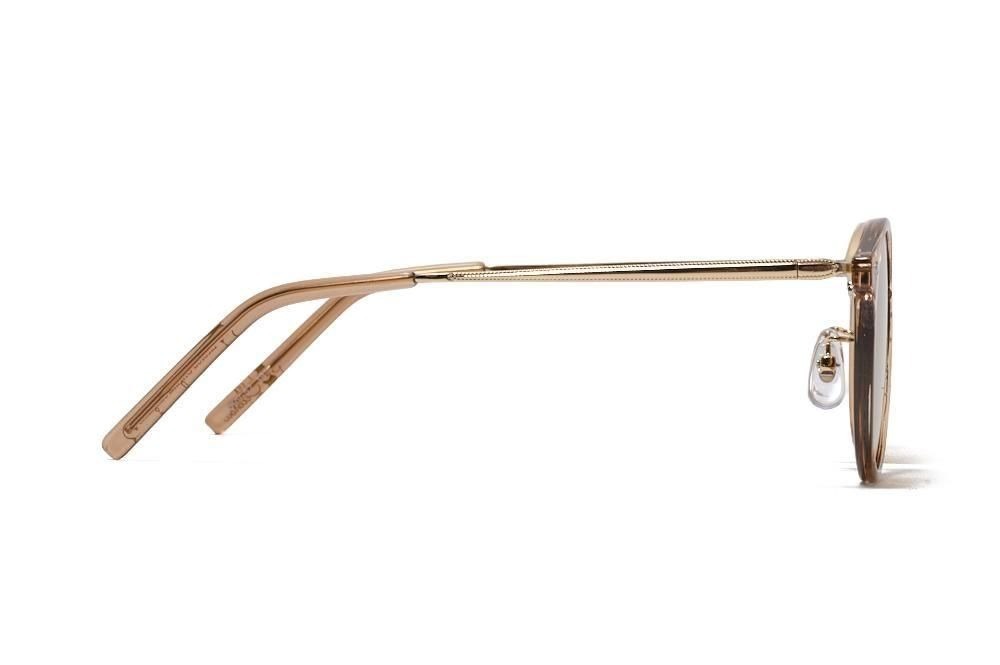 軽やかな透明感のあるフロントに、上品な細身ゴールドメタルフレームを合わせた、大人の抜け感が魅力のボストンサングラスです。