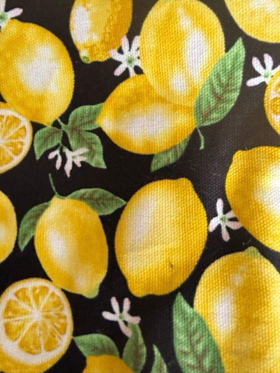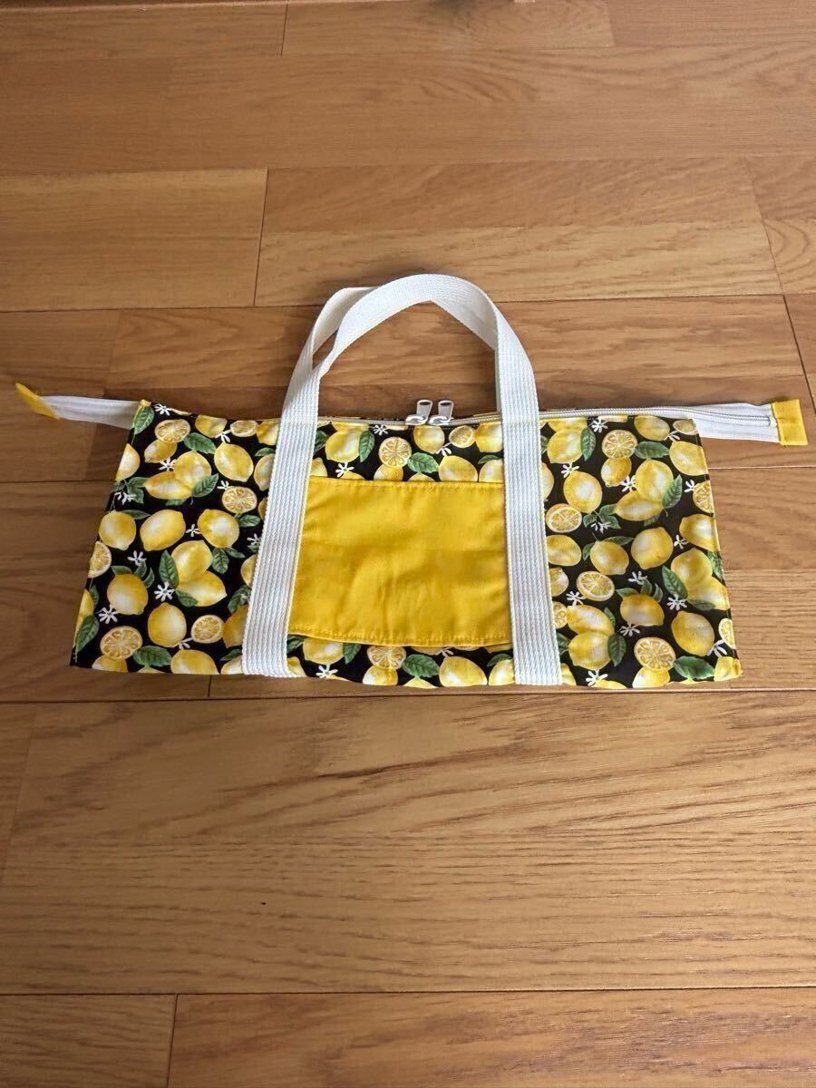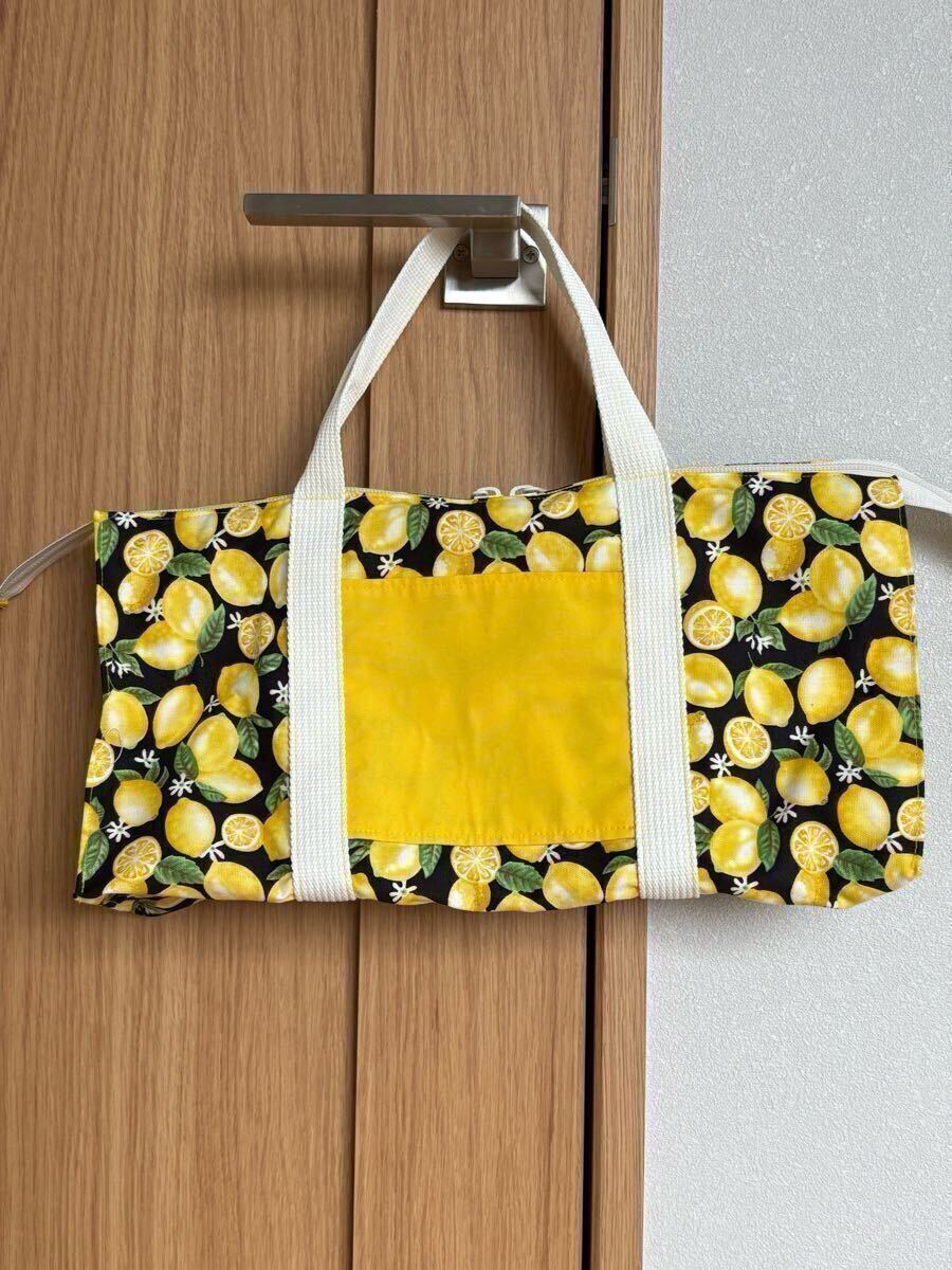 レモン柄がかわいいオックス生地で横長大きめトートバッグを作りました。