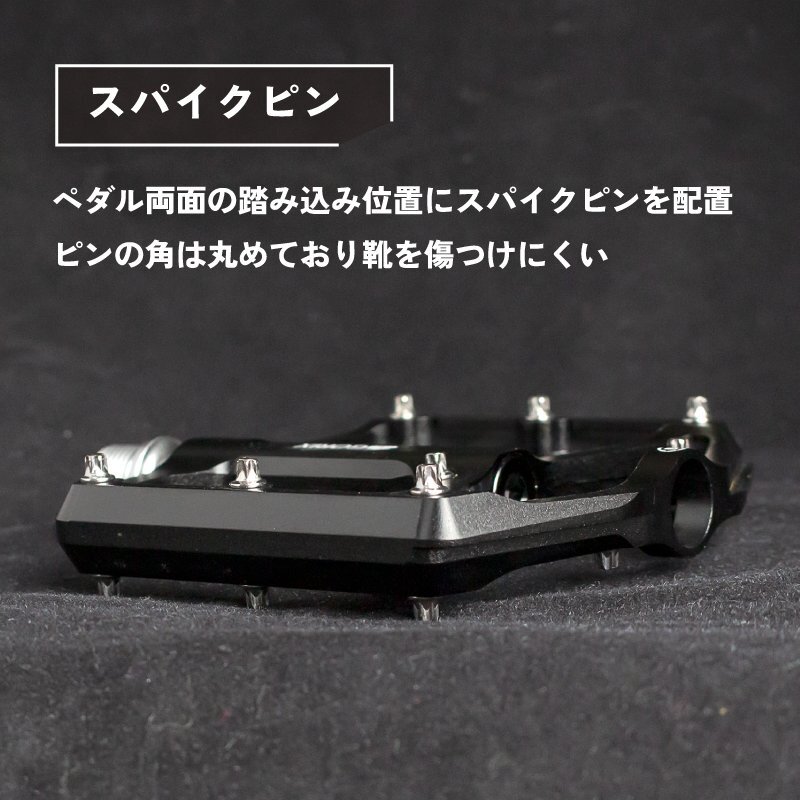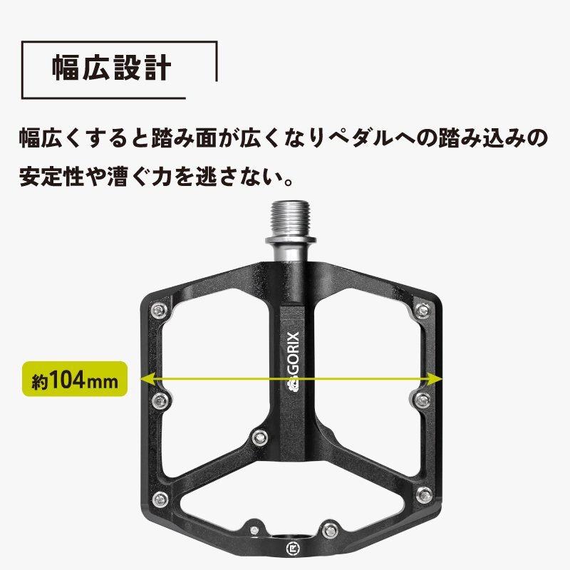 街乗りらしいカジュアルなデザイン。幅広設計で漕ぎやすいペダル。 クロスバイク、マウンテンバイク、ロードバイク、ミニベロ、電動自転車などに最適なマルチペダル。 通勤や街のり、ツーリングなどにも使える実用的なフラットペダルです! 大胆に肉抜き加工が施された形状で軽量で丈夫なアルミ素材を採用。 CNC加工で表面がスムーズで傷がなく、耐摩耗性、耐腐食性がよいです。 踏みやすく食いつきがスパイクピンはしっかりと靴下をホールドします。 3ベアリングは滑らかで高い回転性を実現。 [フラットペダル] シンプルでどんな自転車にもマッチするマットブラック。 カジュアルで街乗りらしいペダルです。 [滑り止めピン] 片面に7個ピンを設置し滑り止め効果を発揮します。 ピンはペダルの踏み込み位置に設置しています。 通常のピンの無いペダルより喰いつきがよく踏みやすくなります。 [踏み面は幅広] 安定性を向上させるため幅広でワイドな踏み面。 靴との接触部分が広くしっかりと足をホールドし漕ぐ力を逃さない。 しっかり体重を乗せられるので効率の良いペダリングが可能。 ペダルの安定感やグリップ力などを十分に発揮。 [ベアリング3つ] 3つのベアリングが内蔵されていて非常に滑らかで高い回転性を実現。 優れた耐久性を持ち、摩擦を最小限に抑えるので回転が滑らかで漕ぎやすい。 また密封されたベアリングは水やほこりの侵入を防ぐ。 ペダルはスムーズに回り効率の良いペダリングに。 [軽量] ボディは大胆にくり抜いて軽量化を実現。くり抜き部分が多くて汚れも付着しにくい。 見た目もスッキリして重さを感じさせずスマートな印象を与えます。 [耐久性] アルミ合金素材のフラットペダルは耐久性が良く錆びにも強い。 CNC加工で耐摩耗性、耐腐食性がよいです。 とても実用的なフラットペダル。 [様々な自転車に] 標準の9/16 インチのネジ径で様々な自転車に装着可能。 ロードバイクやクロスバイク、MTB、ミニベロやピスト、ままちゃり、電動自転車に。 六角レンチ(8mm)もしくは自転車のペダルレンチで脱着できます。 商品内容自転車用フラットペダル左右セット サイズ長さ100x幅104x厚み最大17mm、軸長60mm 軸径標準9/16インチ(ネジ径 約14.3mm) 重量約336g/ペア 材質アルミ合金本体、クロモリ鋼軸 ベアリング密封3ベアリング ※使い始めのペダルは回転が渋くなっている事がございます。特に冬場は内側のグリスが硬くなり、通常より渋くなってしまいますが ご使用されるうちに馴染みが出て軽くなります。 商品は入荷によりキズがある場合があります。 傷や細かい汚れが気になる方や神経質な方は入札をお控え下さい。 入荷時期により予告無く一部仕様変更する場合が有ります。 カラーはディスプレイ種類環境等により実物と異なって見える場合がございます。 |