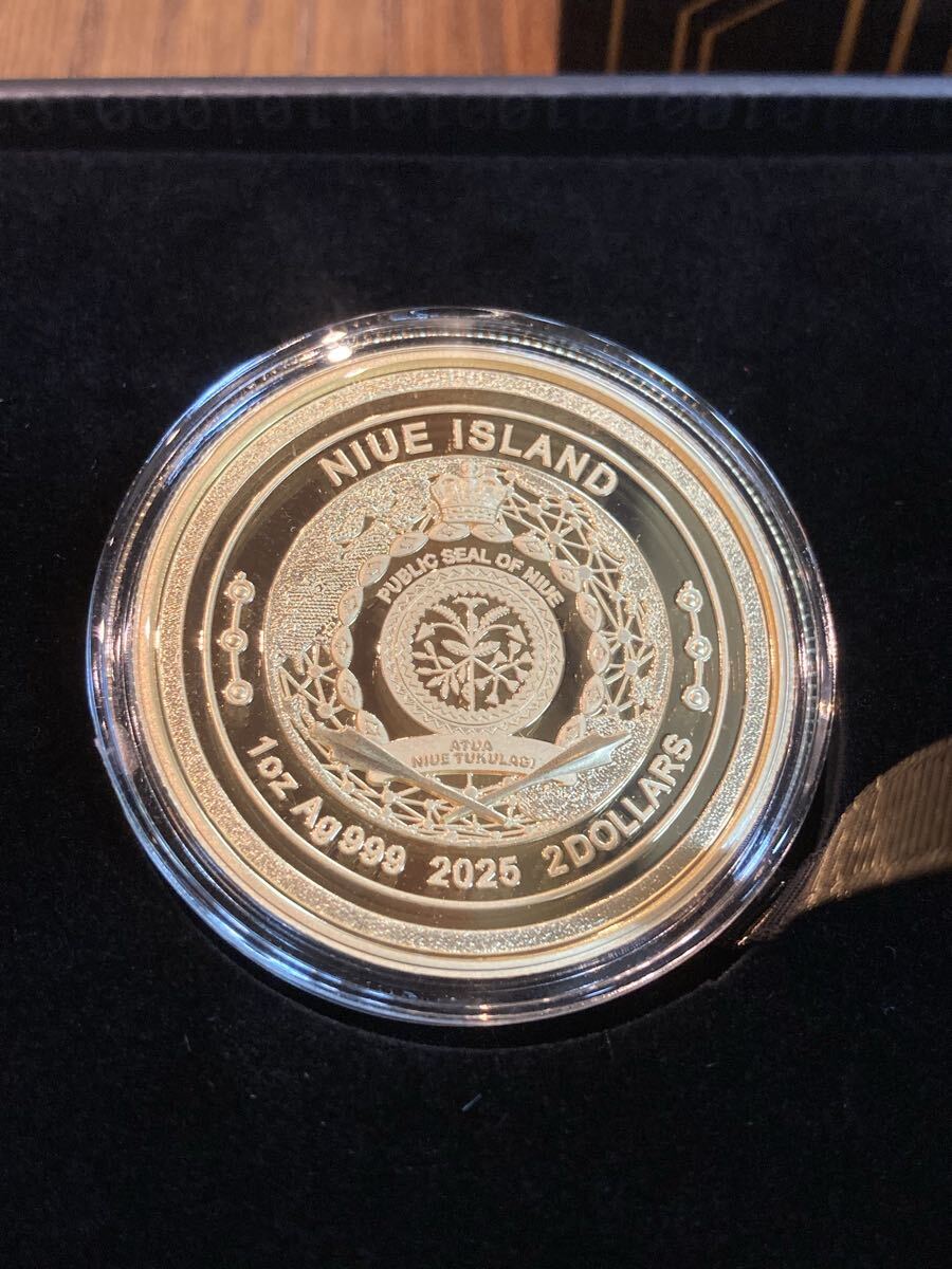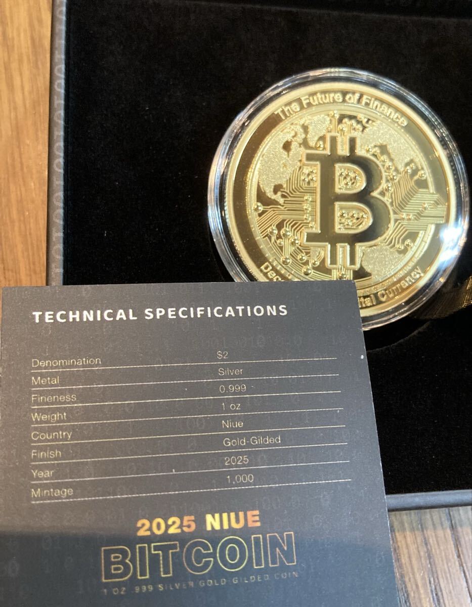 ビットコインをモチーフにした、ニウエ国 2ドル(NZD)銀貨です。