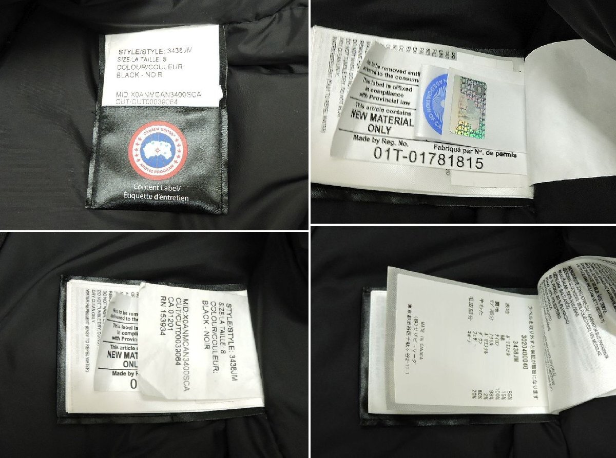 商 品 名 CANADA GOOSE 3438JM ジャスパー パーカー サイズS ダウンジャケット ブラック メンズ 1円 カナダグース 中古品[B125L698]