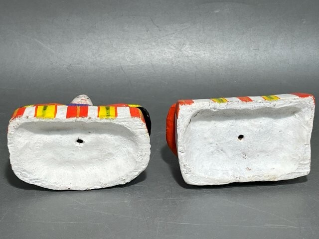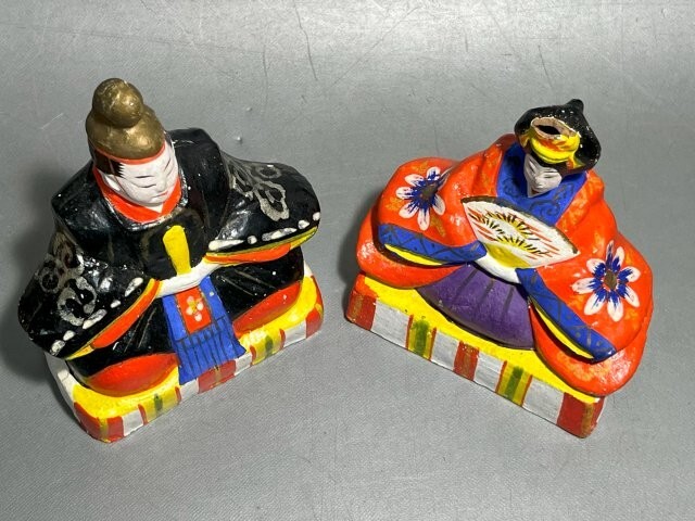 オークションをご覧いただきありがとうございます。 郷土玩具 土人形 おひな様② 雛人形 お内裏様 高さ約14cm 幅約10㎝ 奥行約6.5㎝ おひな様 高さ約13cm 幅約10㎝ 奥行約6.5㎝ おひな様の後頭部に欠けがあります。 経年の擦れ等が見られます。 箱等の付属のものはありません。 現状でのお渡しになります。 写真をご参照ください。 |