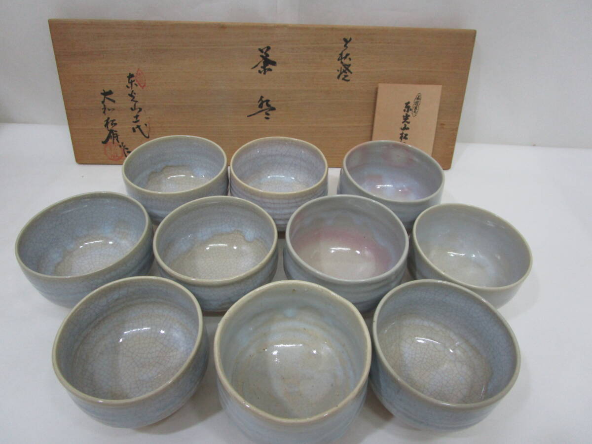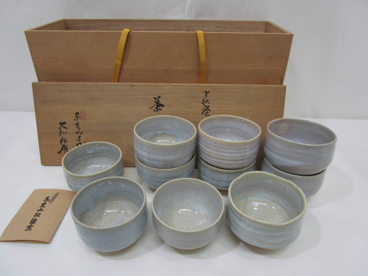 『萩焼』大和松雁作 数茶碗 [10碗]  桐共箱