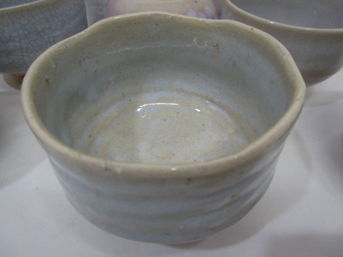 中古茶道具! 萩焼 東光山 松緑窯 大和松雁作 の 形変り 数茶碗  10碗です。サイズ :形変り大小有り:直径11~11.5cm×高さ7.8~8.5cm 高台の横に松雁の印有り。高台にやや汚れが有ります。割れ欠けは有りません。 桐共箱です。 どうぞ宜しく。