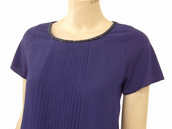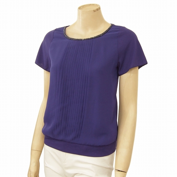 Ut新品同様★グリーンレーベルリラクシング*Green Label Relaxing★青紫系★シフォン&カットソー★煌めきビジューブラウス