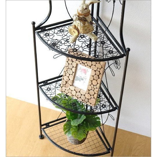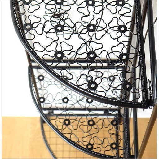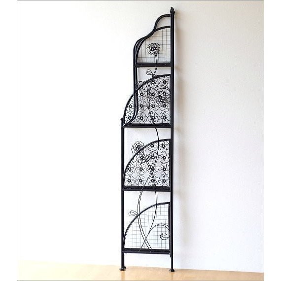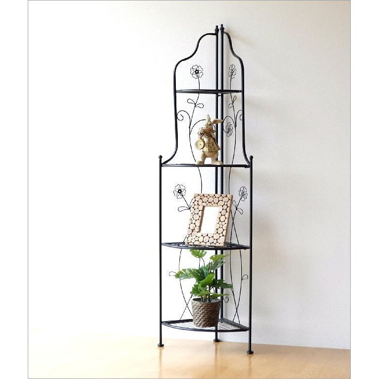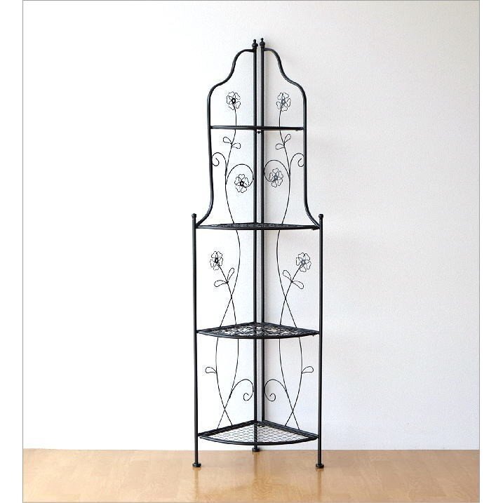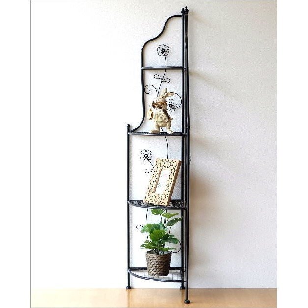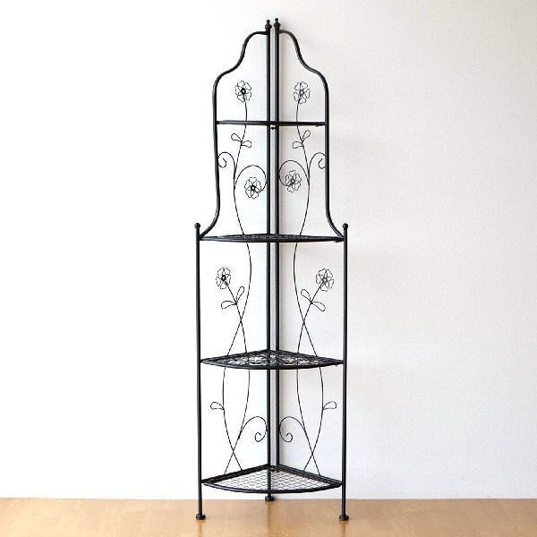 | ブラックアイアンの4段シェルフは 艶のあるブラックペイントで 棚やサイドに アイアンフラワーがデザインされた お洒落で優しいイメージの折りたたみシェルフ リビングの隅や 玄関の隅にも置ける コーナータイプの4段シェルフ 花やグリーンの鉢を飾ったり リビングで小物棚に使ってもお洒落 商品名 : アイアンの折りたたみフラワーシェルフ コーナー 商品番号 : ebn5368 全体サイズ(cm) : 幅47×奥行33.5×高さ161 棚サイズ : 上)幅32×奥行23 下3段)幅43×奥行30×空間高さ35~38 材質 : アイアン 重量 : 4kg 生産国 : 中国 ※手作り品のため、アイアンの小さな曲がりや柄の違い、小さながたつき等はご容赦ください ※棚板の設置には、指を挟まないよう十分にお気をつけ下さい |