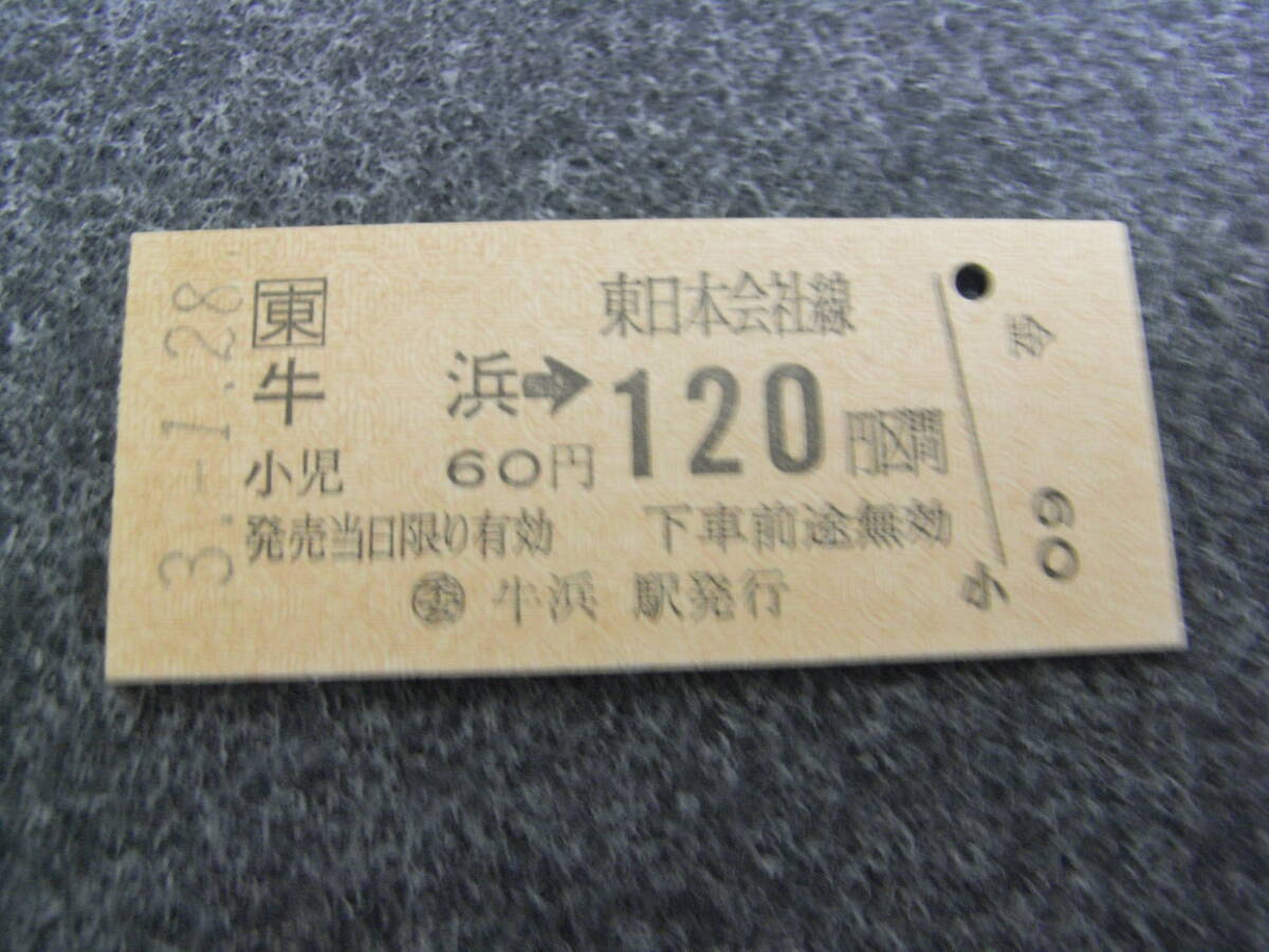 青梅線 牛浜→東日本会社線120円区間 平成3年1月28日 委 牛浜駅発行 JR東日本