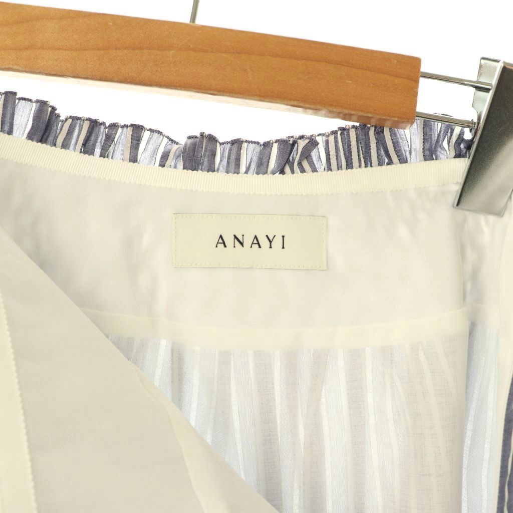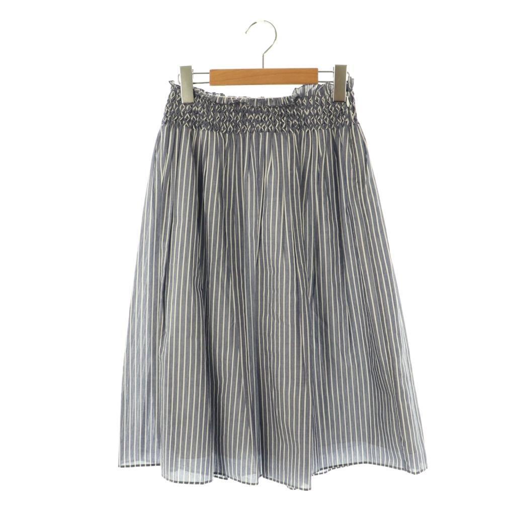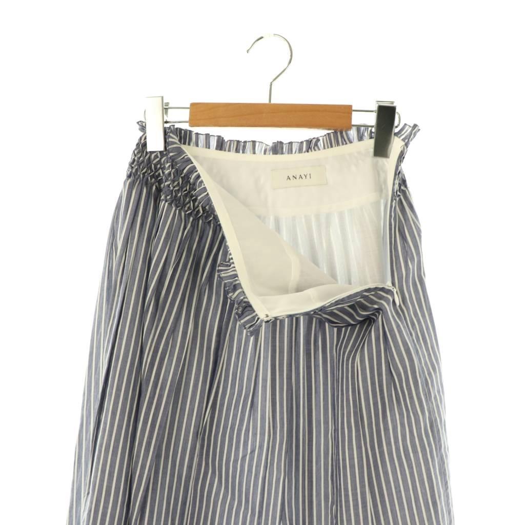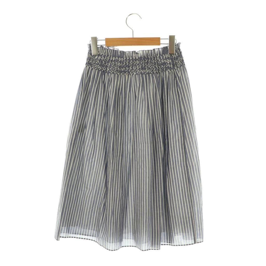 アナイ ANAYI ストライプ タックスカート フレア ひざ丈 34 ネイビー /DF ■OS レディース