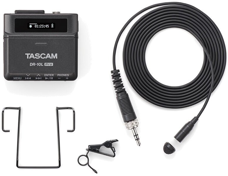 声の録音を明瞭に、確実に、超コンパクトなピンマイクフィールドレコーダー 『DR-10L Pro』は、映画、ドラマ、結婚式、YouTube、Vlogなどの「声」をクリアに収録するピンマイク付きのポータブルオーディオレコーダーです。超コンパクトで軽量な本体サイズで結婚式やロケ撮影を妨げず、32ビットフロート録音でささやき声から叫び声まで確実な録音をサポートします。また、ワイヤレスマイクとは異なり、送受信で起こり得る混信や音切れの心配のないマイクを接続し本体で録音するというシンプルな構造で、電池による長時間の駆動が可能なため、スタンドアローンのバックアップシステムとしても使用できます。さらに、スマートフォンからのリモートコントロールや、Atomos製品を介してカメラとのワイヤレスタイムコード同期に対応し※、プロフェッショナルな要求に応えるレコーダーです。※別売のBluetooth(R)アダプター『AK-BT1』が必要。 目立たない超コンパクトサイズ 手のひらに収まる超小型サイズで、重量は、わずか65g※。映画や結婚式などの撮影で、マイクやレコーダーが映り込まないように衣服に隠して装着できます。また、付属のベルトクリップで簡単にレコーダーを取り付けることができます。※電池を含む。 32ビットフロート録音で簡単設定、確実に録る デュアルA/Dコンバーターを搭載し広いダイナミックレンジを確保。編集時に音量を上げ下げしても解像度を維持できる32ビットフロート録音に対応しています。わずらわしいレベル設定は不要で、録音スイッチをスライドするだけで簡単に音割れしない録音が可能。忙しい収録現場でも確かな録音をサポートします。また、大きな声も割れることなく明瞭にとらえることができるピンマイクを付属し、『DR-10L Pro』の32ビットフロート録音を最大限に生かすことができます。 32ビットフロート録音とは? 最大24.5時間の長時間駆動とオートファイルセーブ機能 単4形電池2本で最長24.5時間駆動し※、結婚式、イベントや式典など長時間にわたる録音でも頻繁な電池交換は不要で、忙しい撮影現場でのクリエイターの負担を減らします。また、20秒ごとに録音データを自動で保存しているため、電池切れなど想定外のケースが発生した場合のデータ消失を最小限にします。※リチウム乾電池使用の場合。 最大5台を同時にリモートコントロール可能なアプリ iPhone、iPad、Android用の無償アプリ『DR-10L Pro CONNECT』を使用すれば、最大5台を同時にリモート操作できます※。アプリでは、トランスポート操作、録音設定、各個体をわかりやすく管理するための名称設定、波形のリアルタイムモニタリングが可能です。個別操作に加え、一括で録音・停止も可能です。※別売りのBluetooth(R)アダプター『AK-BT1』が必要。 『DR-10L Pro CONNECT』の機能: 波形表示で入力音を視覚的にモニタリング 任意の名称やカラーを設定でき複数の機体をわかりやすく管理 メタデータ情報(プロジェクト名、シーン名、テイク番号)をiXMLデータに記録 アプリ内に本体のプリセットデータを保存可能。お気に入りの本体設定を瞬時に呼び出し スマートフォンやタブレットの時刻情報に本体時計を自動同期 ワイヤレスタイムコード同期 『DR-10L Pro』を使えば、映像と音声のズレに悩まされることはありません。別売のBluetooth(R)アダプター『AK-BT1』を装着することによりAtomos UltraSync Blue経由でカメラ※とワイヤレスタイムコード同期が可能。これにより、複数のレコーダーやカメラを使用する収録において動画ファイルと『DR-10L Pro』の音声ファイルを同期することが容易となり編集フローの効率化を実現します。 視認性の高い有機ELディスプレーを搭載、機器の設定を素早く確認 暗い環境でも、明るい屋外でも、録音ステータス、レベルメーター、電池残量などを本体の有機ELディスプレーにより一目で確認できます。本体の設定は『DR-10L Pro CONNECT』アプリでも可能な他、本体のみで簡単に行うことができます。 ヘッドホン出力 モニタリング用の3.5mmのヘッドホン出力を装備しています。録音前/録音中の入力モニタリングや録音データは、パソコン介さず本体ですぐに再生し確認ができます。 音声リペアツール『iZotope RX Elements』をバンドル ポストプロダクションで圧倒的な支持を得るオーディオリペアツールiZotope社RX Elementsをバンドル。RXは、オーディオファイルのノイズなどを自動的に特定して修正するRepair Assistant機能が大幅にアップグレードされ、声のバックグランドノイズ、クリックノイズ、ハムノイズや余分な残響などを除去しプロクオリティの制作を強力にサポートします。※RX ElementsはiZotope社の製品です。 主な特長 ・軽量、コンパクトでウェアラブルな設計 ・ピンマイク(ラべリアマイク)が付属(ケーブル長:1.6m、マイククリップ、ウィンドスクリーン付) ・32bitフロート録音とデュアルADコンバーターを搭載。入力レベル調整なしでささやき声から叫び声まで、高解像度の録音が可能 ・MP3形式の録音が