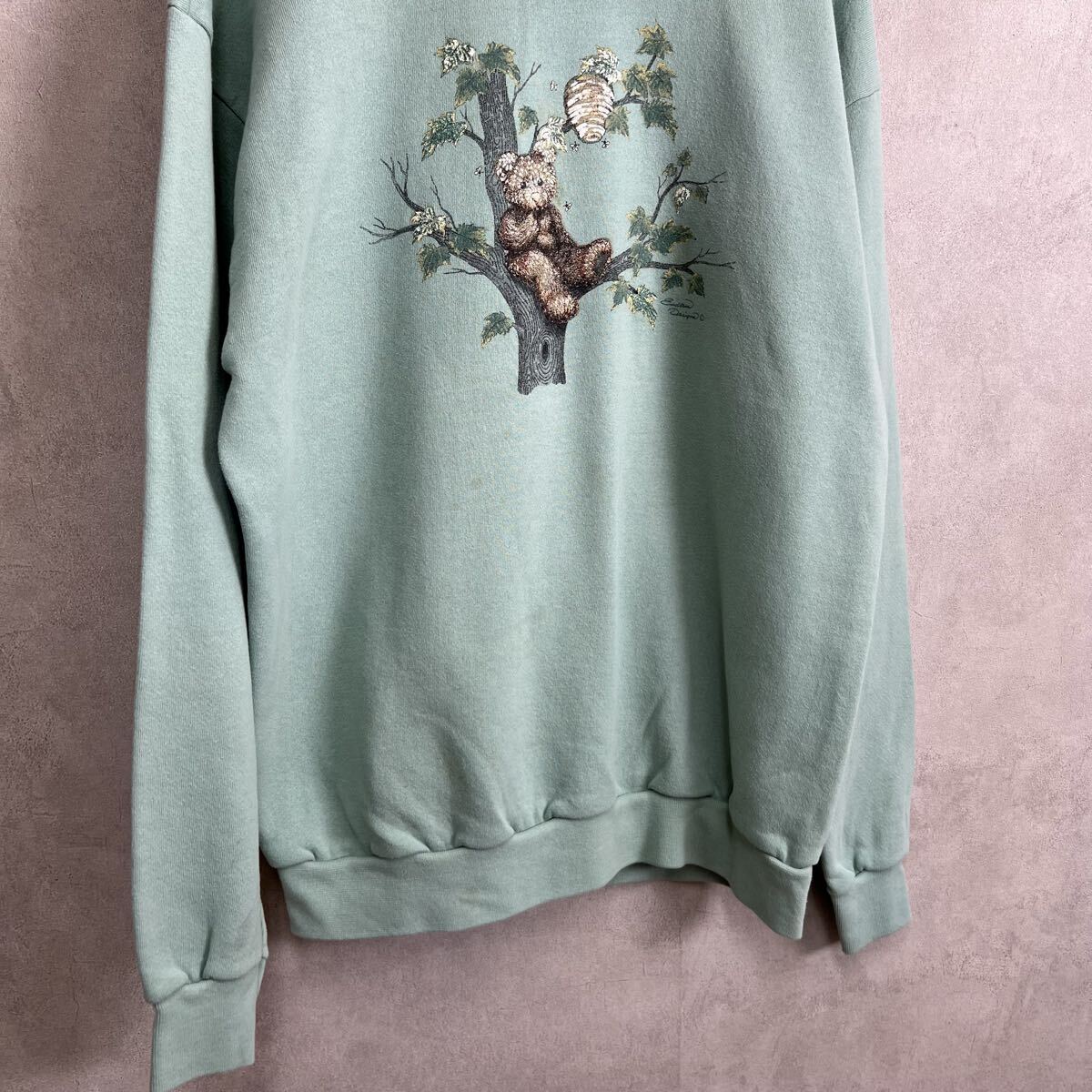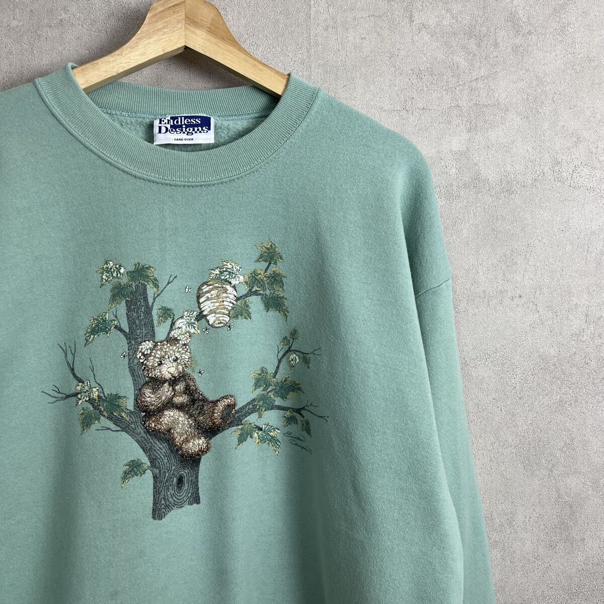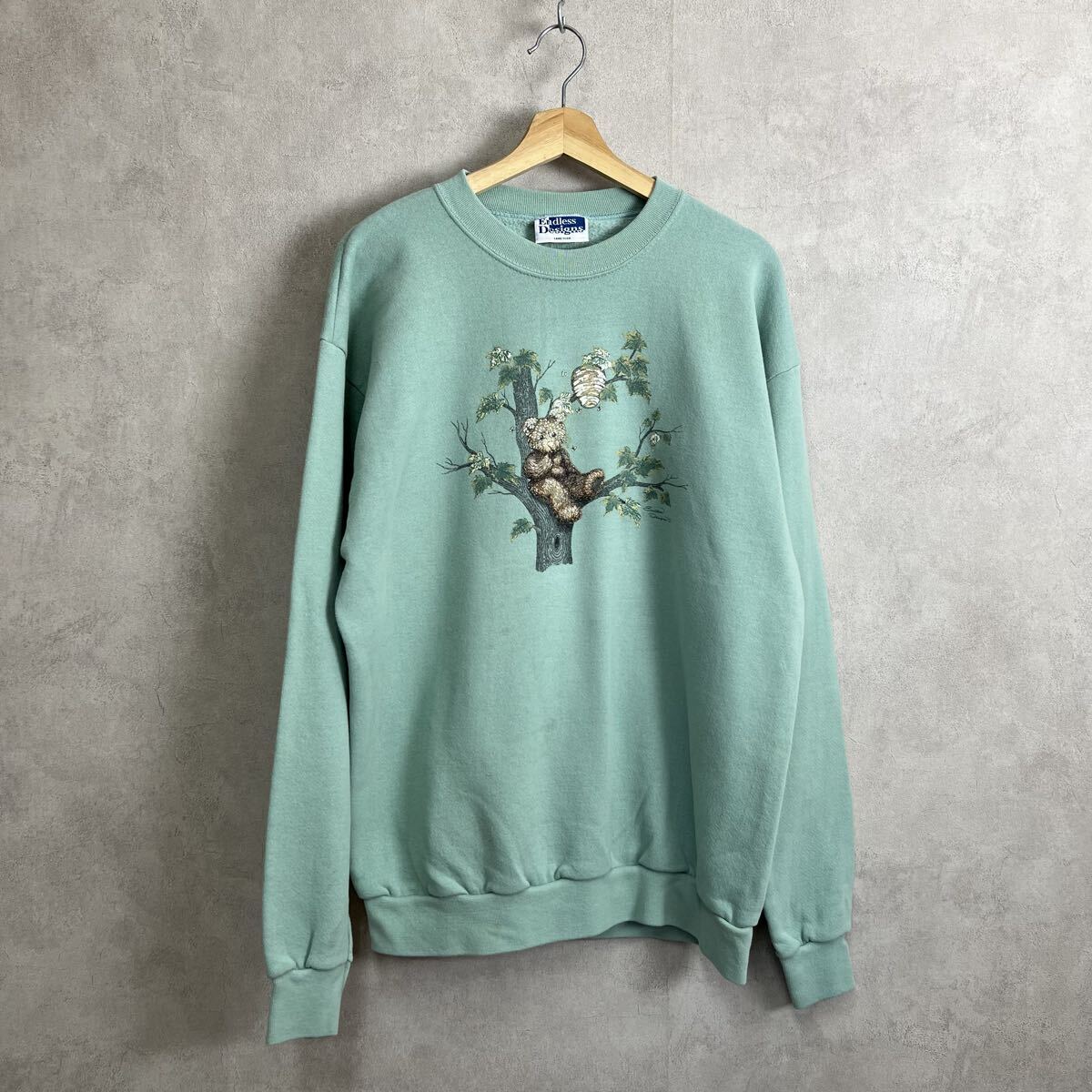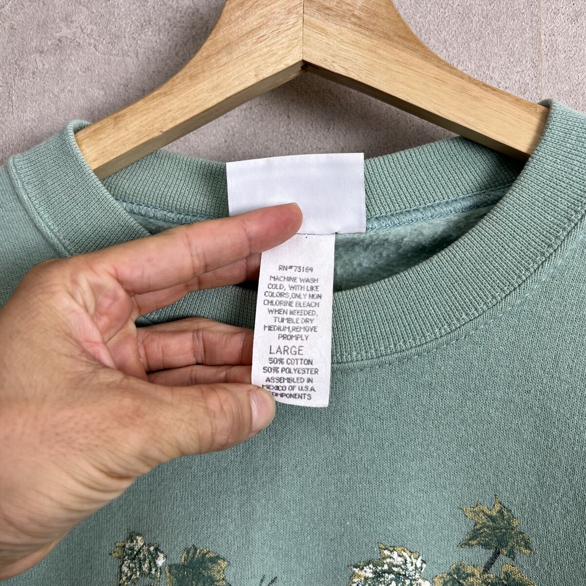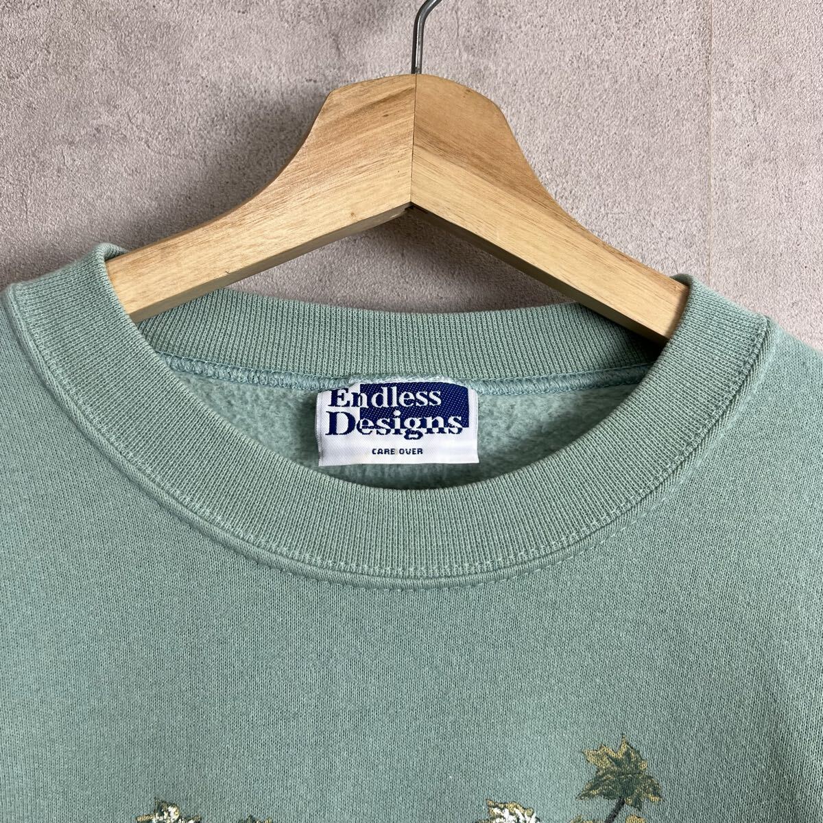 1990年代から2000年代頃のヴィンテージ、淡いグリーンのプリントスウェットシャツです。