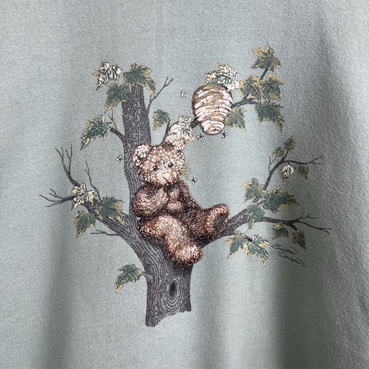 木の上に座るクマ、蜂の巣などのレトロな可愛いプリント。