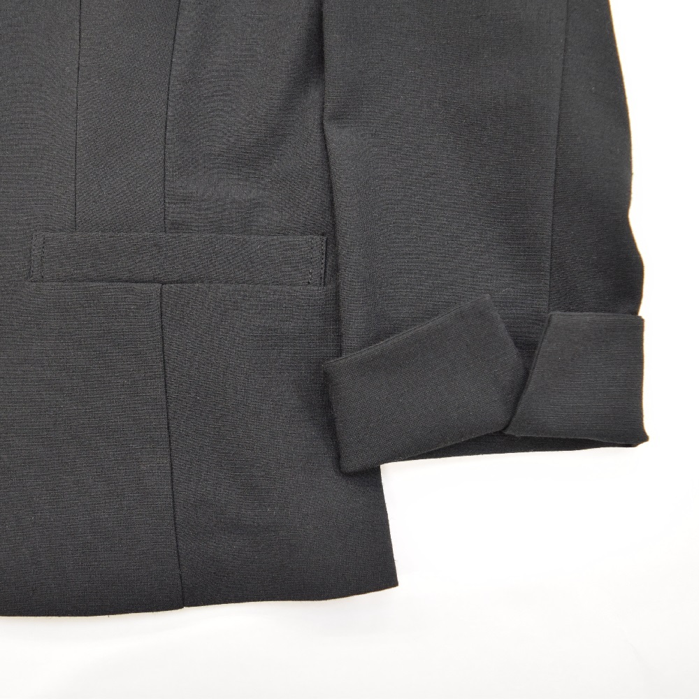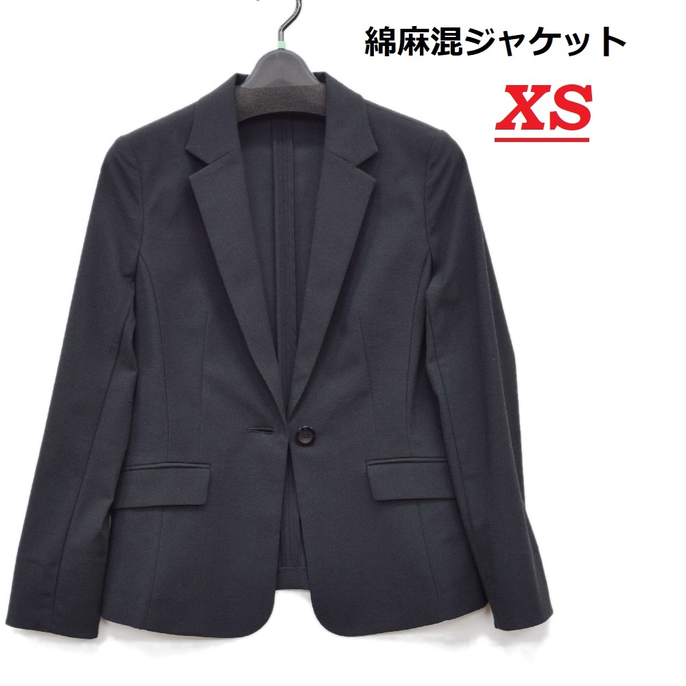 春夏 ジャケット 黒 XS ポリエステル リネン コットン ストレッチ テーラードジャケット 麻混 綿混