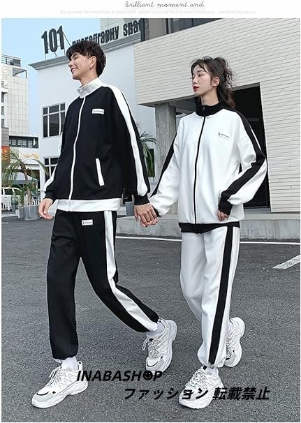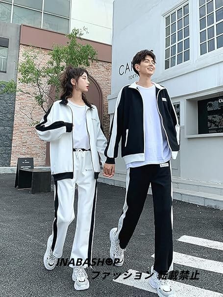 春秋 ペアウェア 2点セット ジャージ 上下セットアップ メンズレディース スウェット ジップパーカー カップル カジュアル ゆったり 韓国風