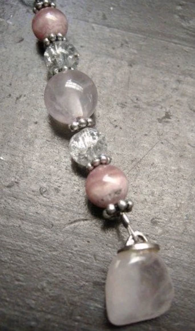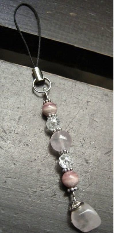 ローズクォーツxインカローズxクラック水晶ストラップ*1 天然石 パワーストーン