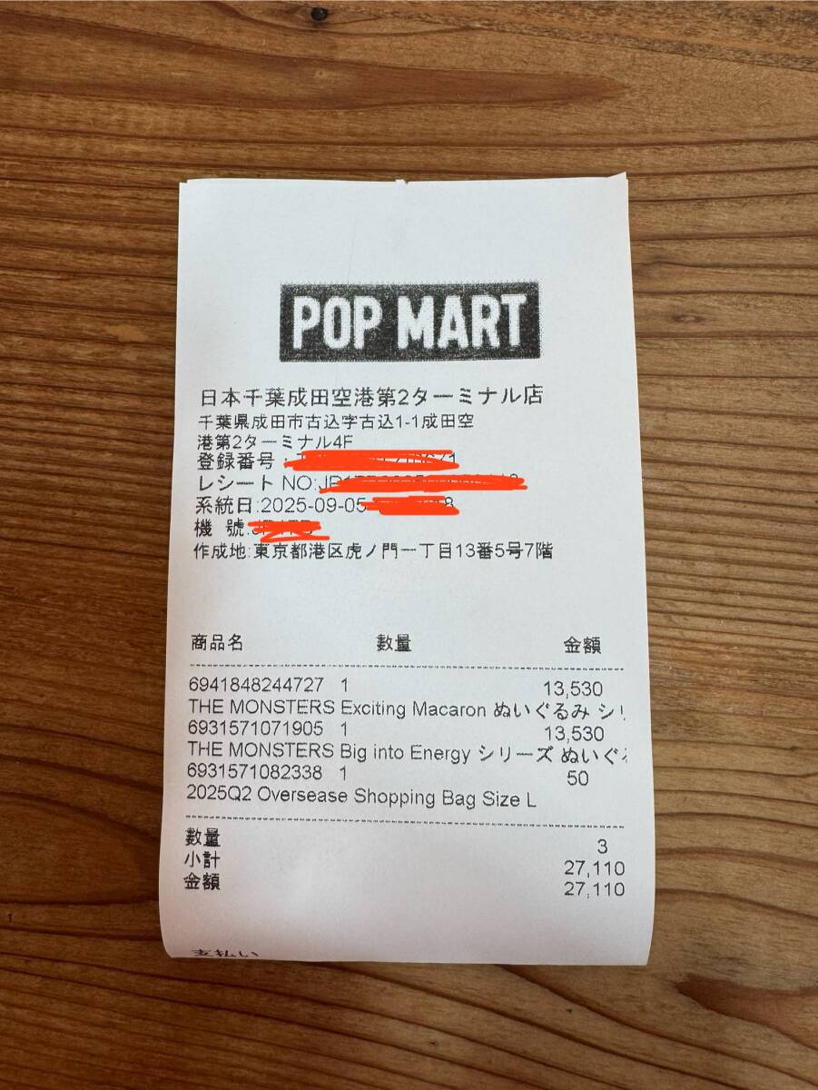 ポップマート 成田空港第2ターミナル店で購入しました。