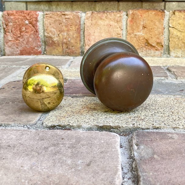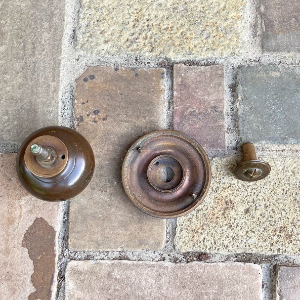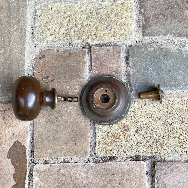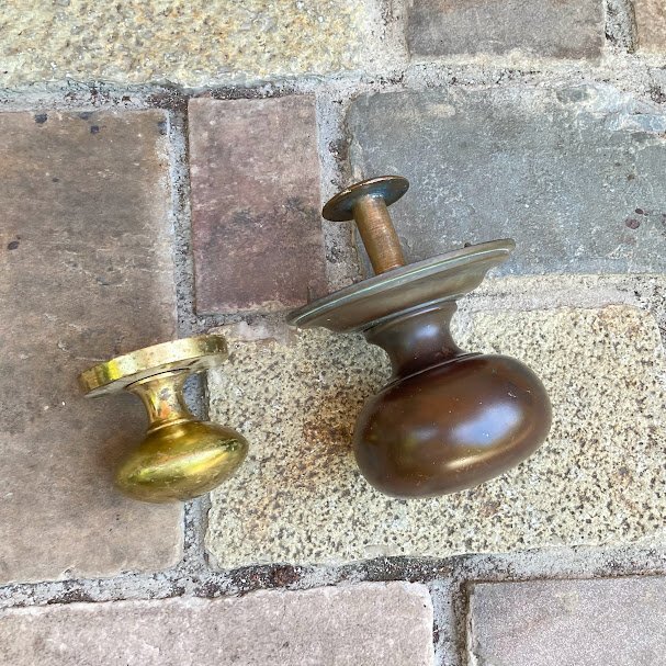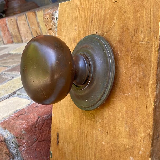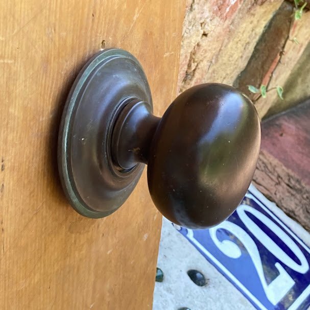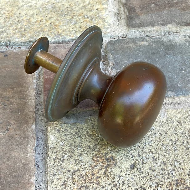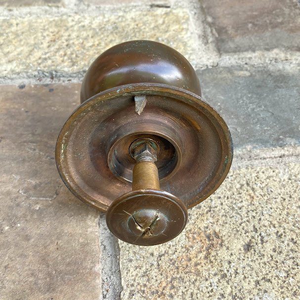 イギリスでは見かけることの多いセンターノブが届きました【41-23】一般的なサイズのノブと比べると、その大きさに驚きます。歴史的な建物によく使われており、ぐっと力を入れて押し開けるため大きめのノブになっているそうです。ずっしりと重量感のあるたたずまいは、取り付けたドアをインパクトのある姿に変えてくれるでしょう!ドア厚は35mm~50mmぐらいまで対応。イギリス製、年代不詳。福岡市南区の店舗にてお渡しもできますのでお気軽にどうぞ!