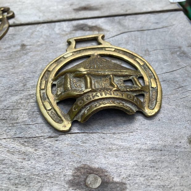 ホースブラス(HORSE BRASS)とは馬の額や首に飾るために使われていた真鍮製の飾りです。魔除けやラッキーアイテムとしてイギリスではパブや暖炉のそばに多く飾られています。ビクトリア時代には馬だけでなく、様々な動物、妖精、人物などのモチーフが作られました。重さがあるので、ペーパーウエイトとして使ったり、バッグにつけたり、家具にはめ込んだり、と自由な発想で楽しんでください。こちらは品番【43-183-A】HOUSEとなります。