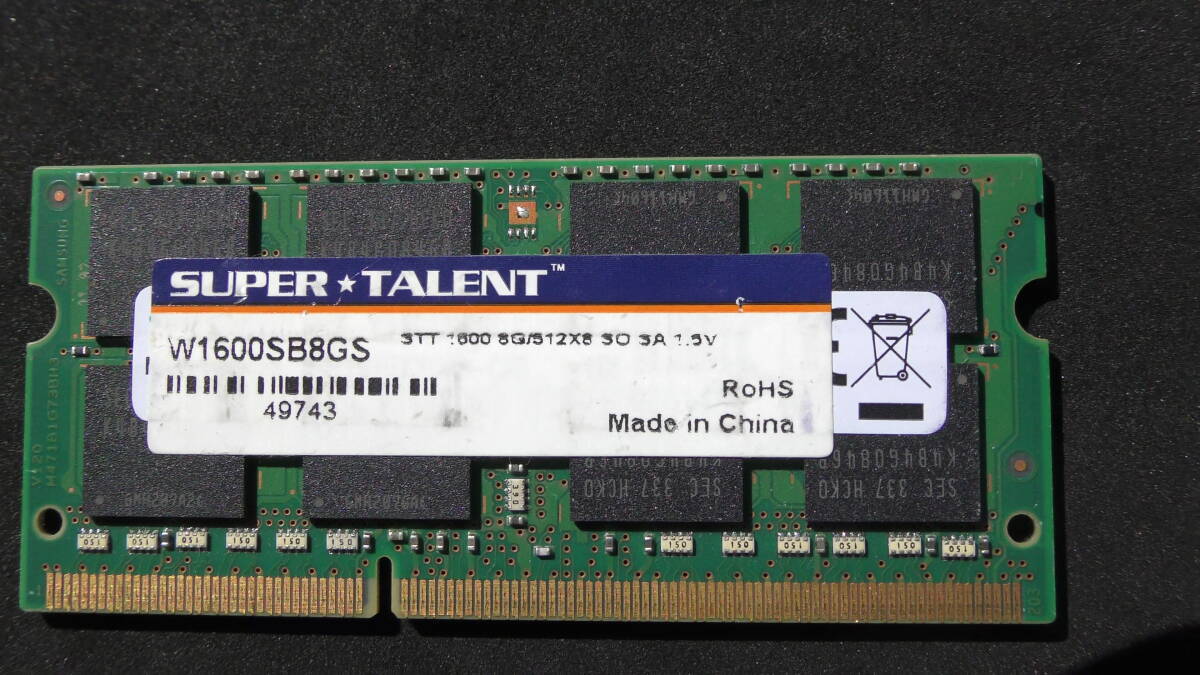 閲覧頂きましてありがとうございます。SUPER TALENT製 DDR3 8GB PC3-12800S SO-DIMM 204pin 低電圧対応