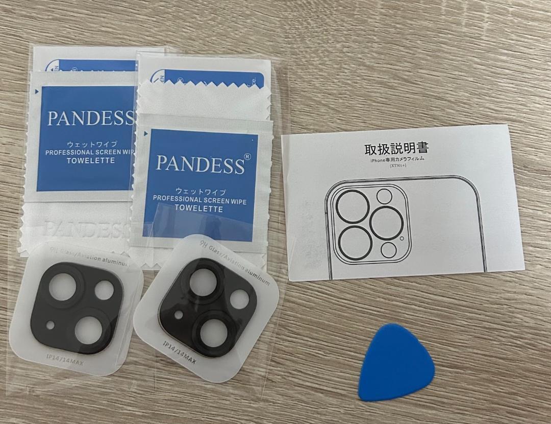 iPhone14 カメラフィルムのカメラレンズカバー2個セット、クリーニングワイプ付き。
