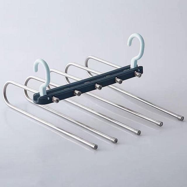【商品サイズ】:写真をご参照ください。 ズボンを掛けた状態でも折りたたむことができ、スペースを節約したいときにおすすめ。 吊り下げ棒が5本付属しているので最大で5着掛けることができます。 手前に引っ張るだけだから、取り出しがスムーズ ハンガー部分はステンレスを使用し耐荷重約15㎏なので,重たいズボンでも変形しにくいです。