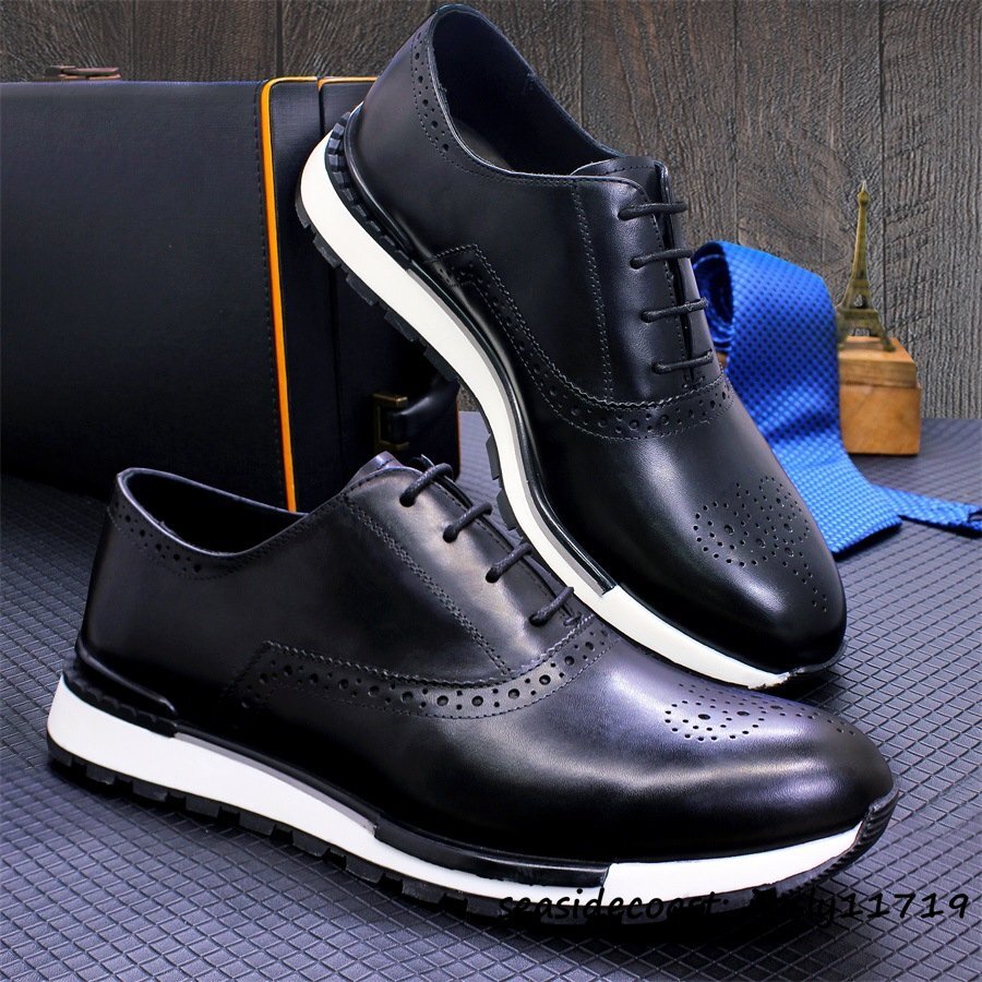 極美品*13万 スリッポン ローファー レザーシューズ ビジネスシューズ 本革 スニーカー 職人手作り 牛革 厚底 革靴 紳士靴 ブラック 25.0cm