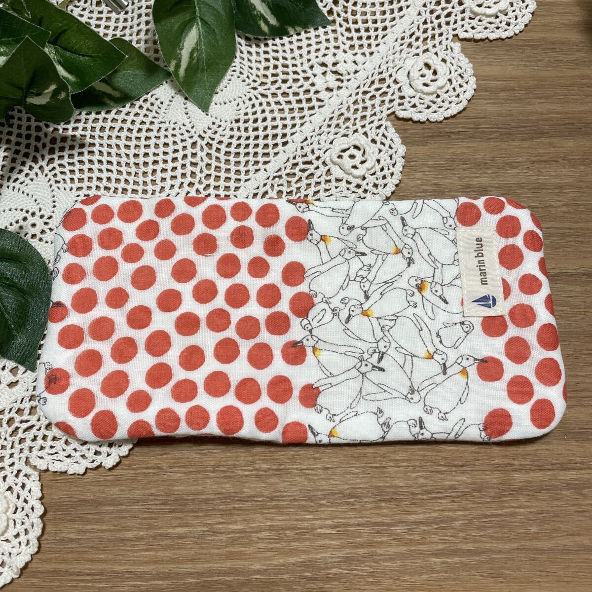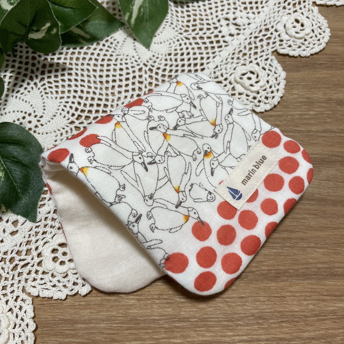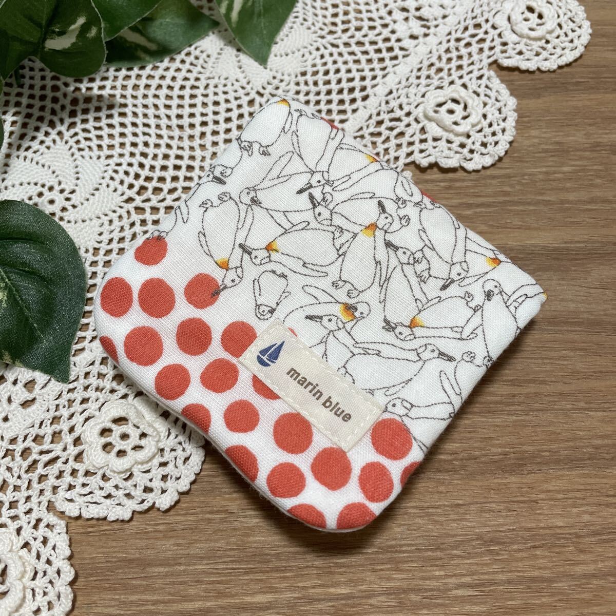 049 ハンドメイド ハンカチ ハーフサイズ ペンギン 水玉