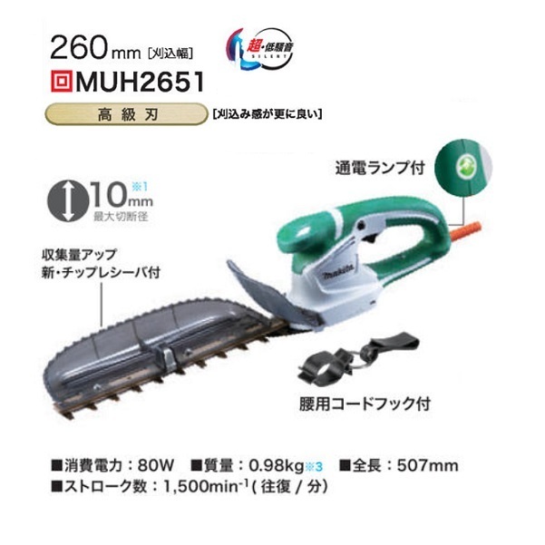 マキタ製のミニ生垣バリカン(ヘッジトリマ)のMUH2651です。