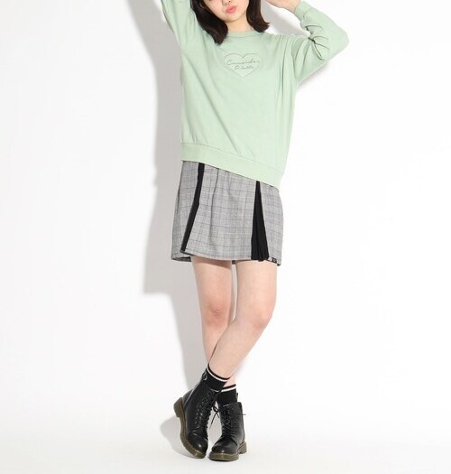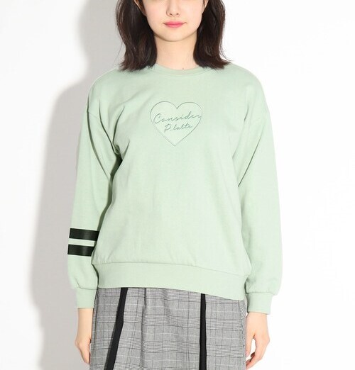 細畝のコーデュロイ生地を用いたハート型のアップリケが視線を惹きつける裏毛プルオーバー。