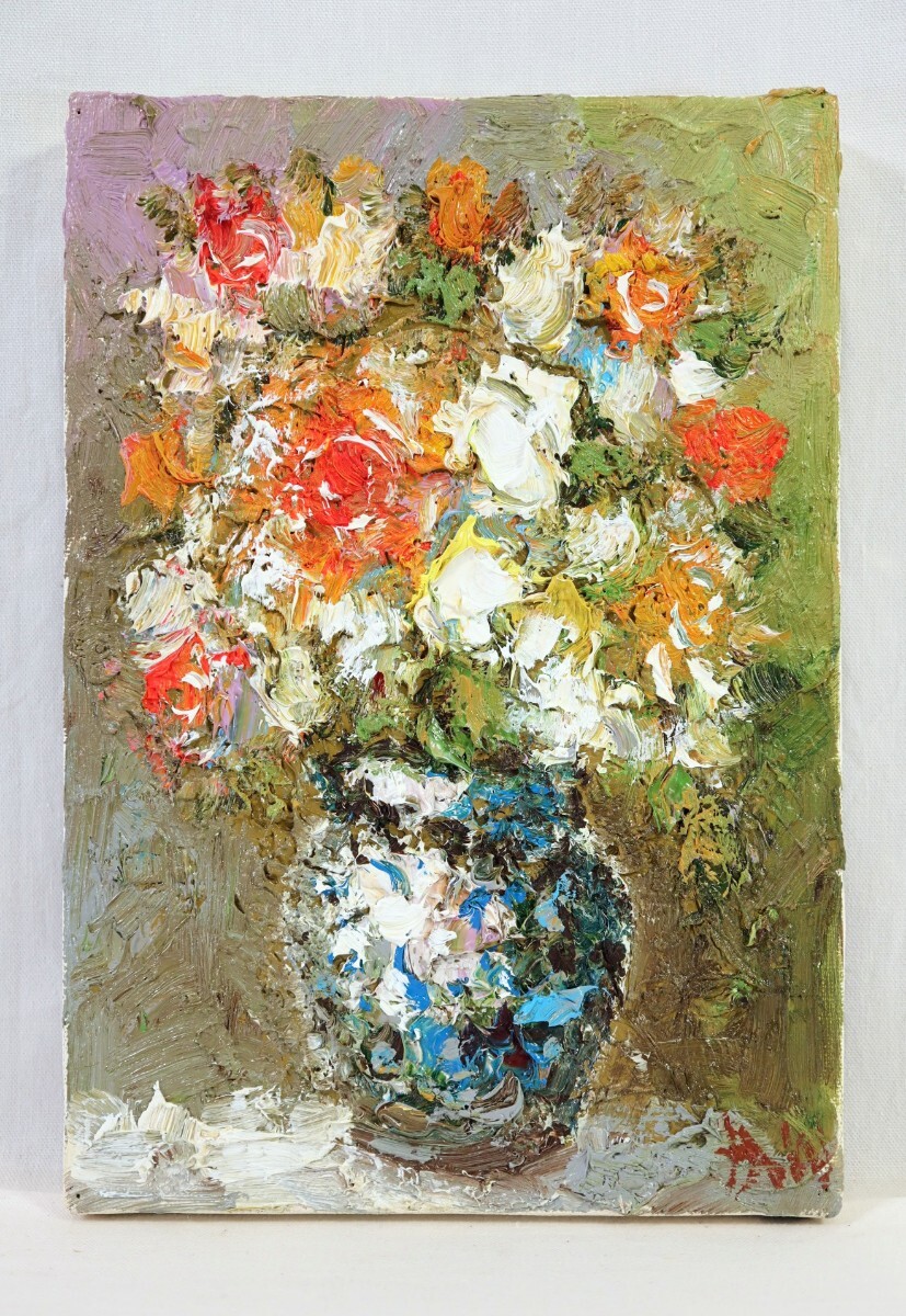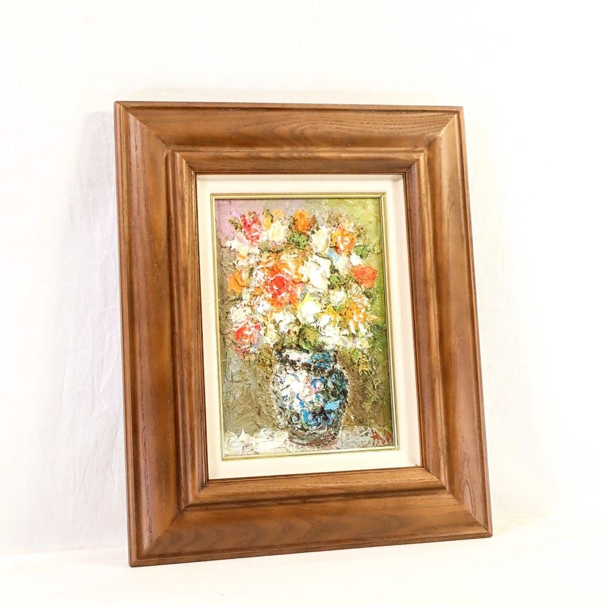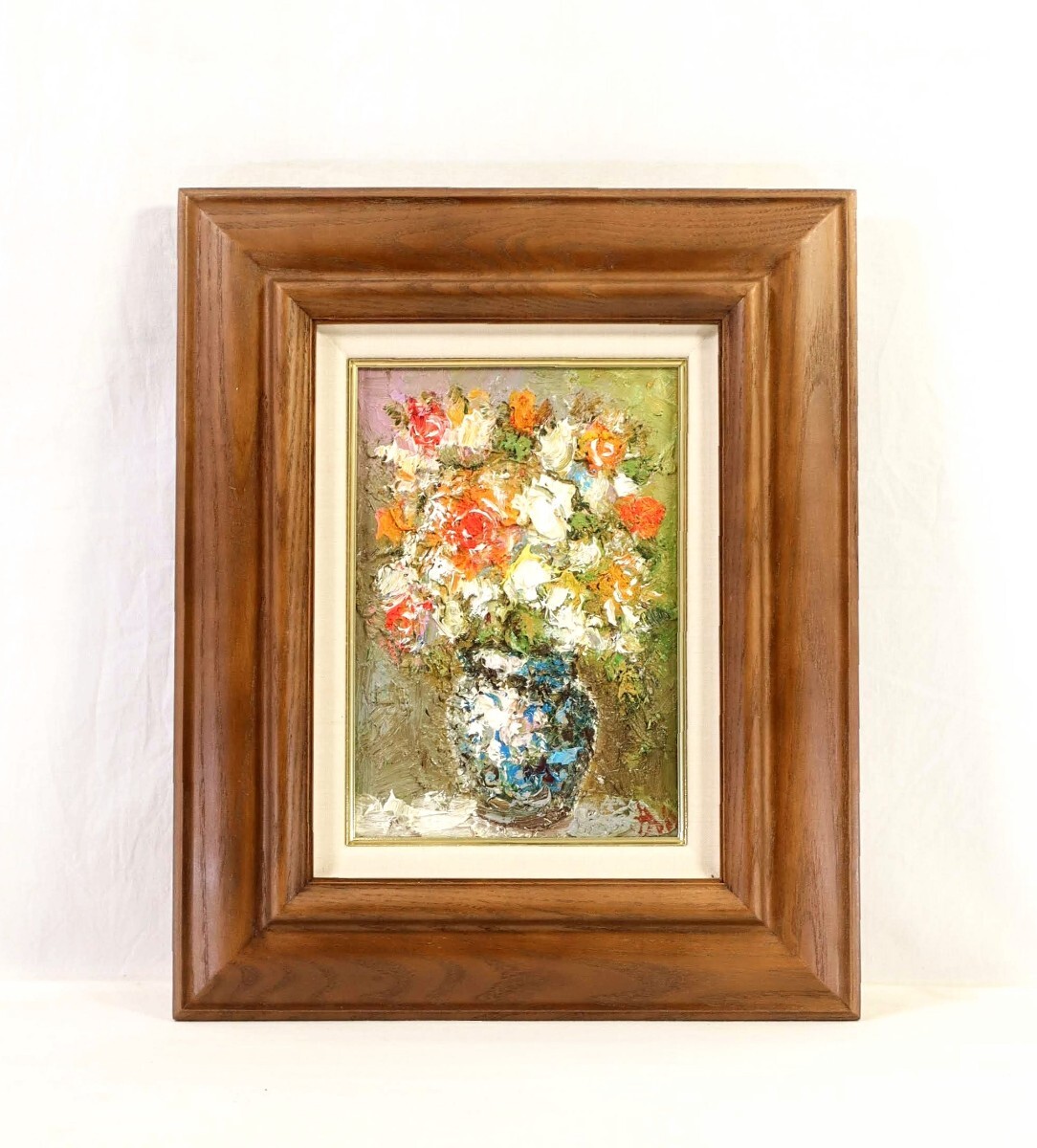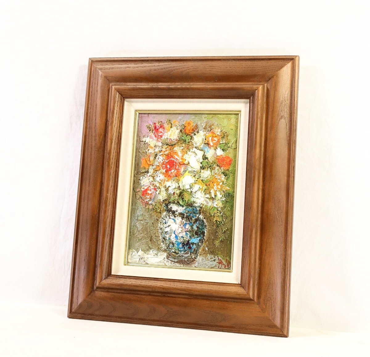真作 渡部ひでき 油彩「薔薇」画寸SM 広島県出身 アートウェーブ72代表 重厚マチエールで華やか 見事なバラの花 瑞々しさ生命力感じる 9736