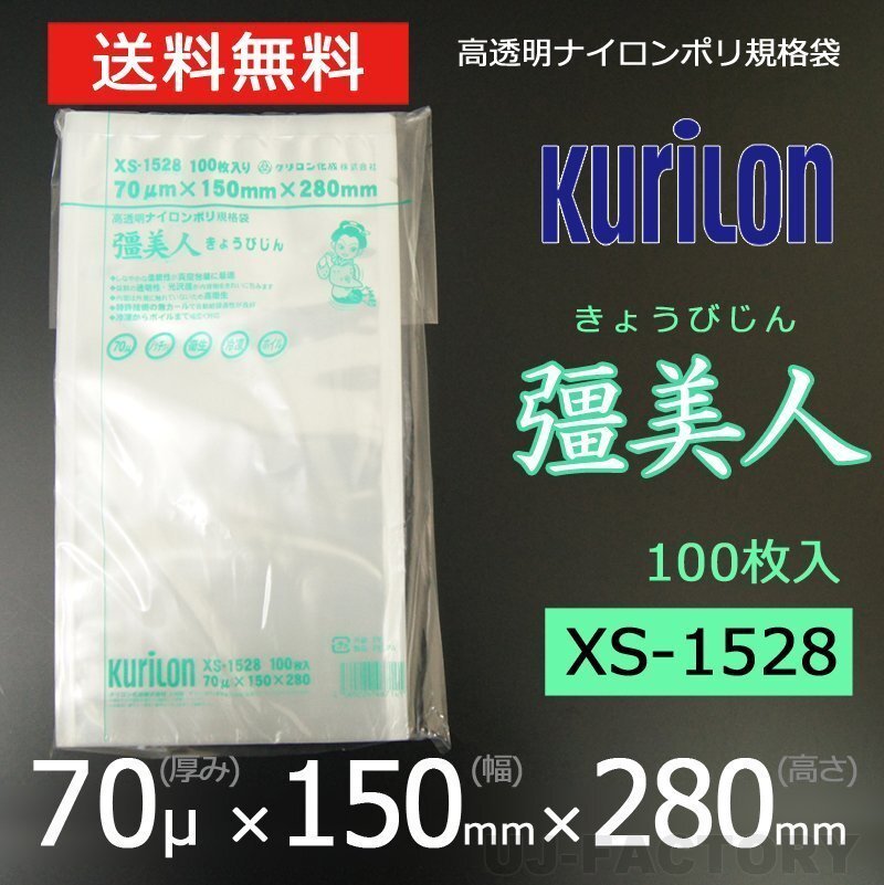 【即納!送料無料】彊美人 70ミクロン XS-1528 ナイロンポリ袋/真空袋 (厚み 70μ×幅 150×高さ 280mm)【100枚】★五層構造・三方規格袋
