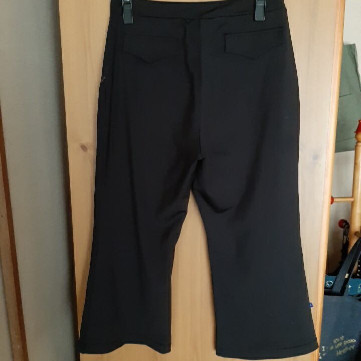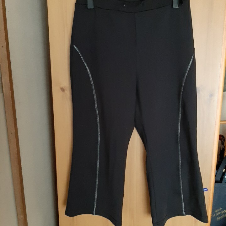 Kaepaのブラックにシルバーのステッチがアクセントになったフレアーヨガパンツ*