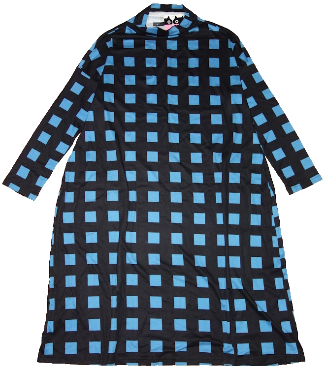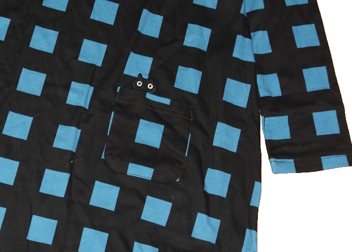 マタノアツコ★ワコール★ワンピース パジャマ ネグリジェ★Lサイズ★格子柄 x ネコのMEMEちゃん★綿100% スムース素材★ブルー★俣野温子