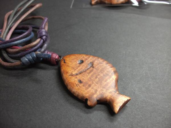 楓のちぢみ杢の入った木を使って彫刻で少し間の抜けた感じのするうおぜを彫刻で彫り出し、ペンダントを作ってみました。仕上げは漆を使って拭き漆仕上げで仕上げました。