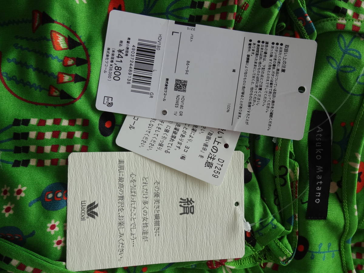 Lサイズ シルク マタノアツコ俣野温子☆ワコール新品パジャマ長袖丸首 シルク絹100%ルームウエアGR携帯用巾着袋付 送料185円追跡OK!