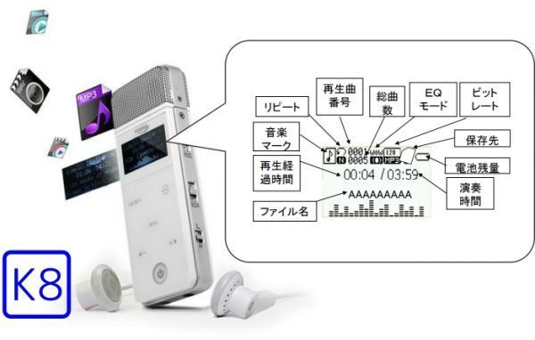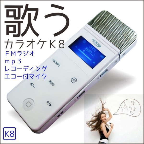 ハモリ・カラオケプレーヤーK8 録音/再生 mp3プレーヤー ステレオマイク 1個