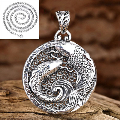 珍品!◆鯉シルバーネックレス1◆送料無料!◆ 鯉◆ お守り◆ 厄除け◆ メンズ◆ 幸運◆運上昇◆