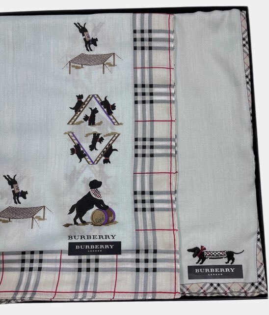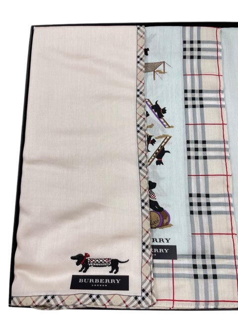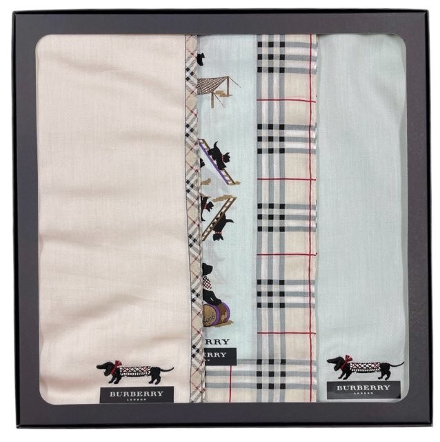 未使用 バーバリー ハンカチ 3枚セット チェック 犬ミニチュアダックス  スカーフ 綿 レディース BURBERRY 【中古】