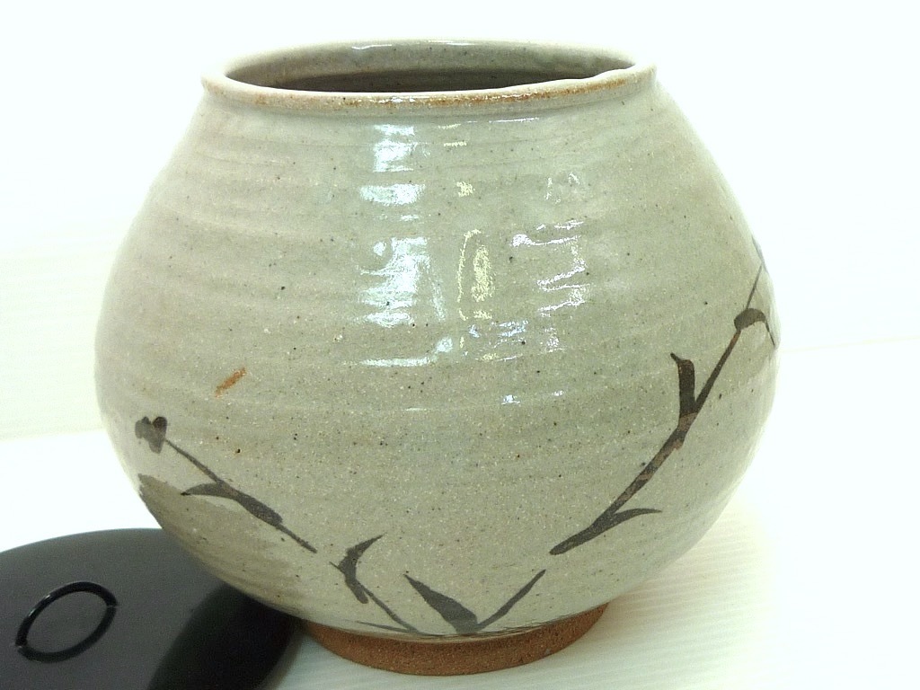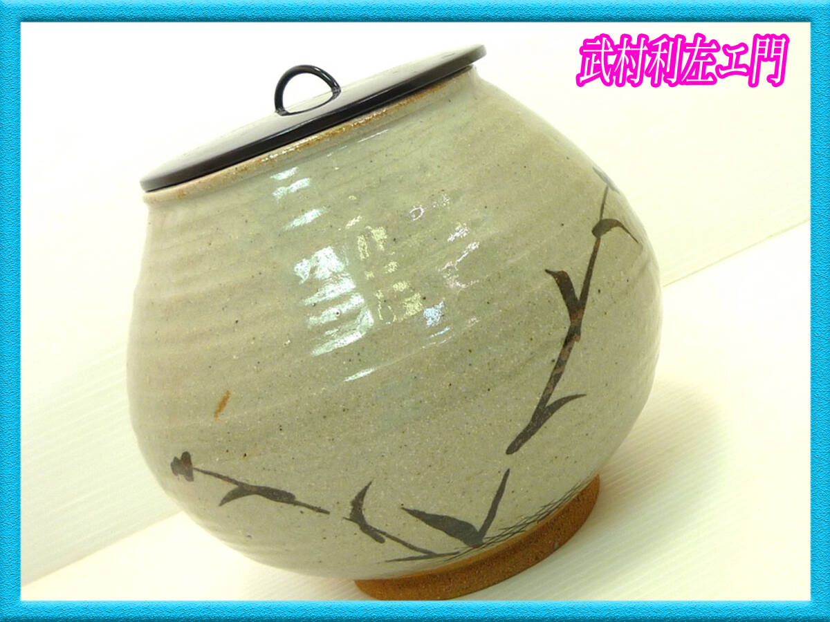 未使用 新品 武村利左衛門 水差し 唐津焼 絵唐津 茶道具 蓋付き 茶室 伝統工芸 茶陶唐津 水器 陶器 昭和レトロ レア 逸品 必見 旧家蔵出