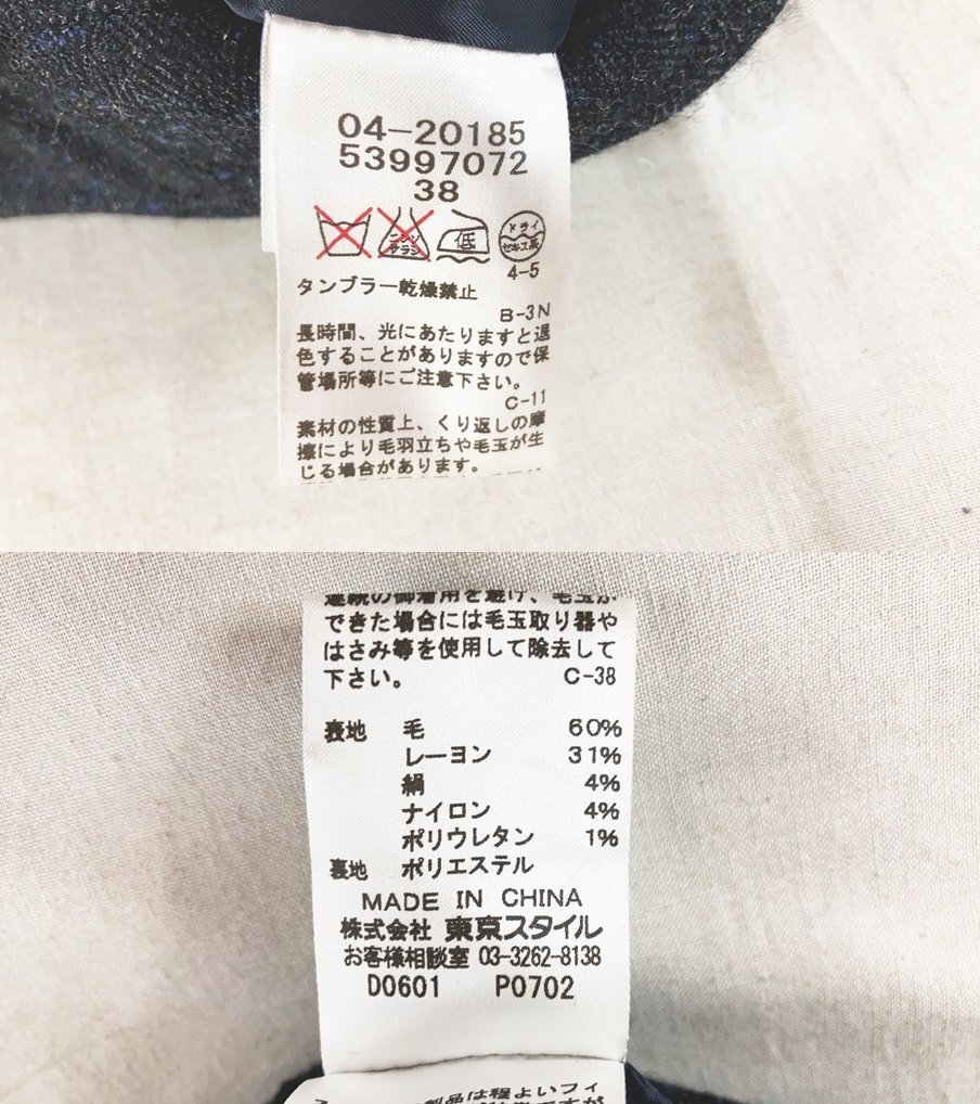 ブランド名等 :22OCTOBRE  株式会社東京スタイル  MADE IN CHINA