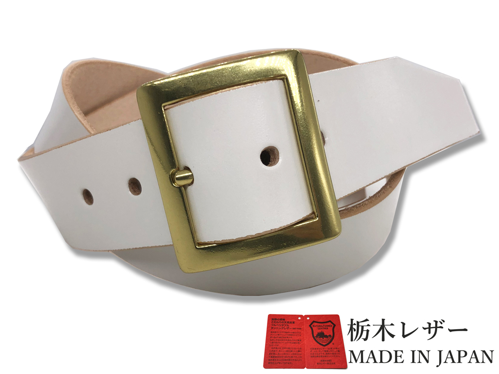 新品 栃木レザーベルト 固定サイズ 本革 牛革 メンズ レディース 白 国産 日本製 ム地 レザー カジュアル 40mm 32インチ W008WHG 80