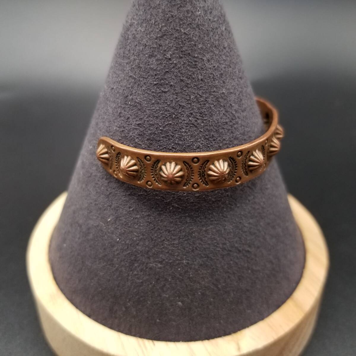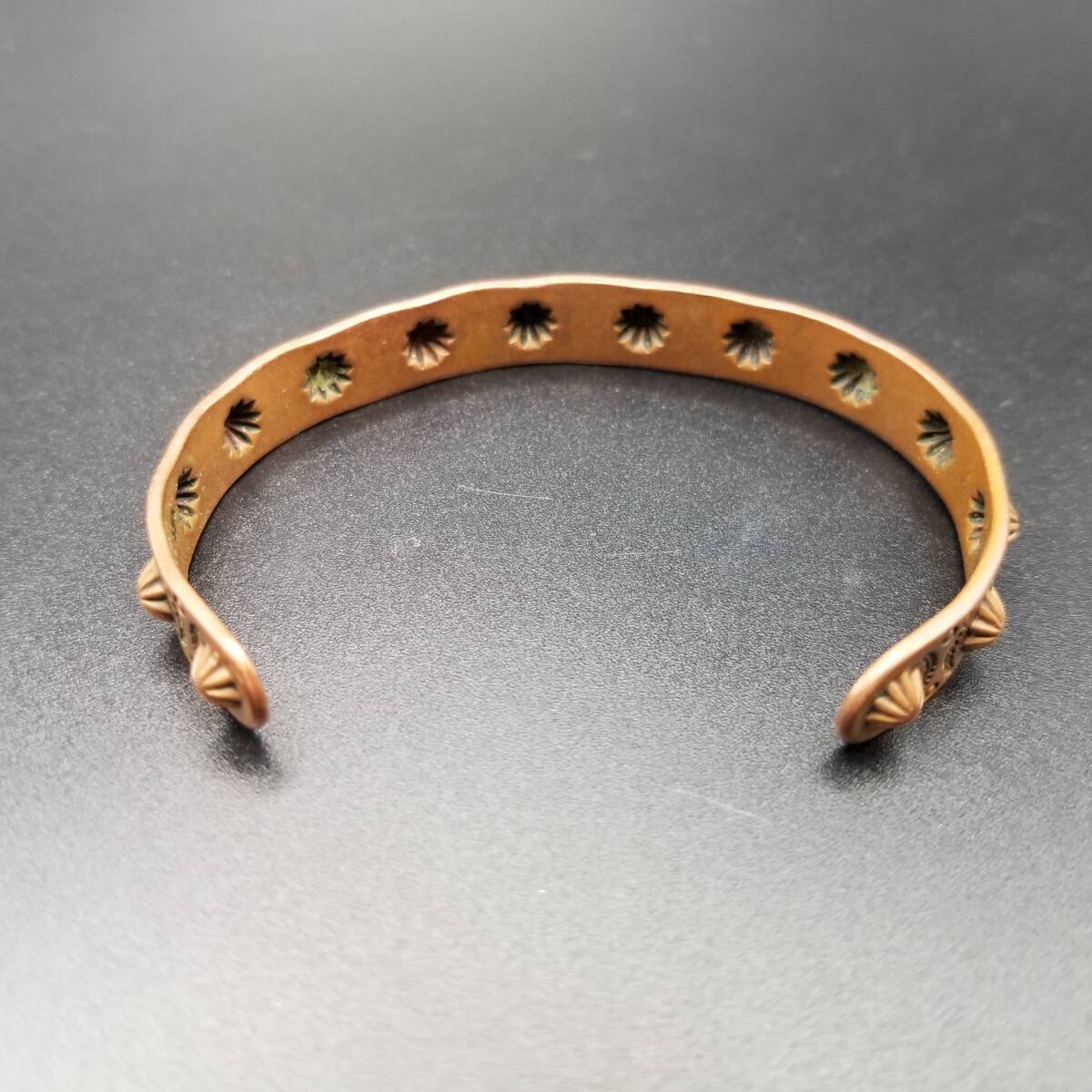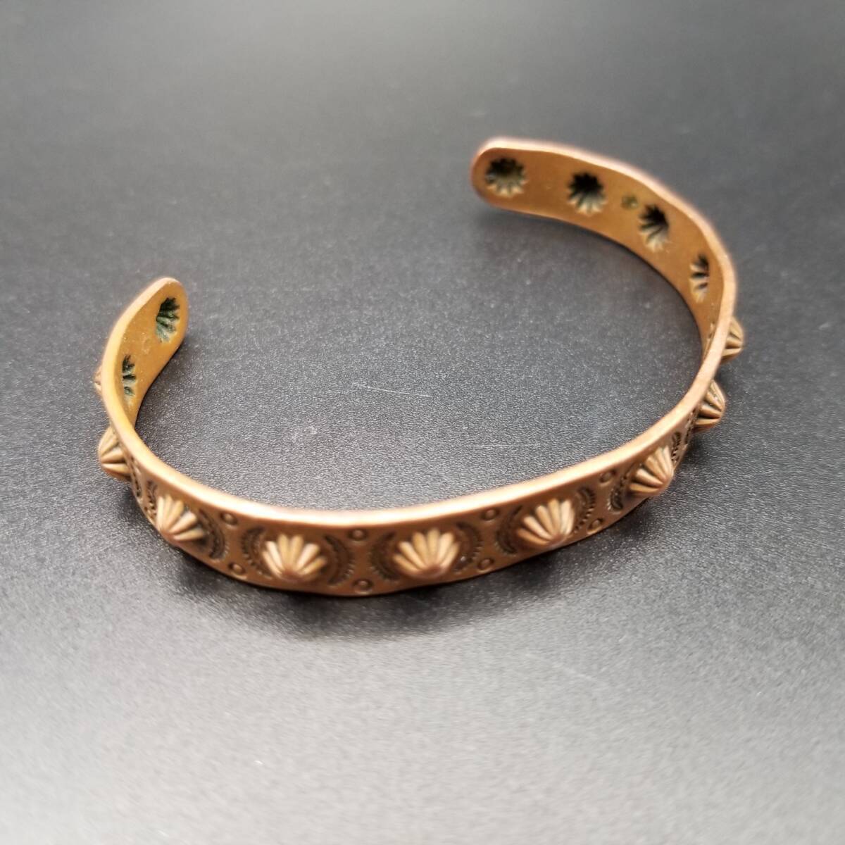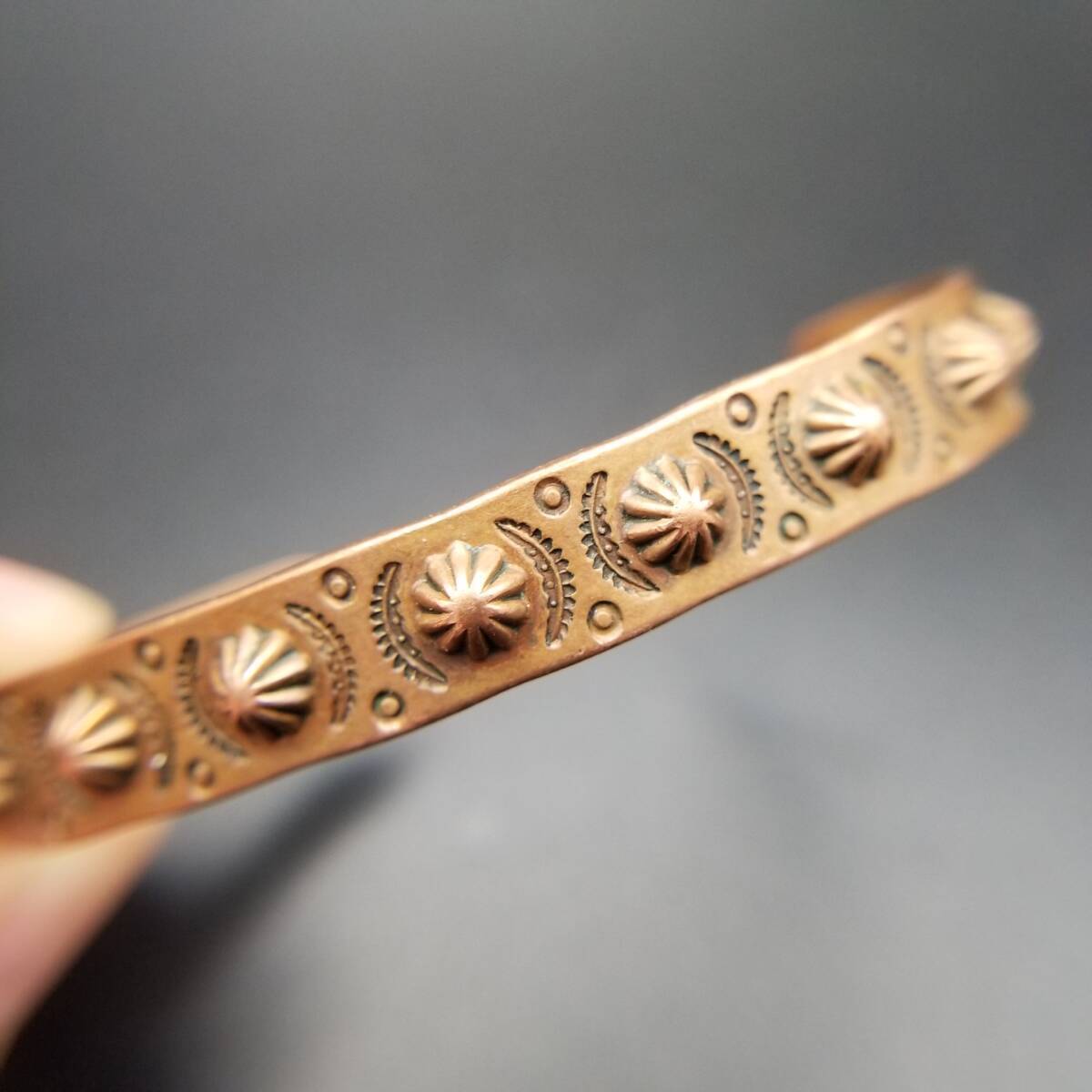 フラワー トゲトゲ デザイン スタンプワーク ヴィンテージ カフブレスレット バングル 銅/コッパー製 サウスウェスタンジュエリー R14-F